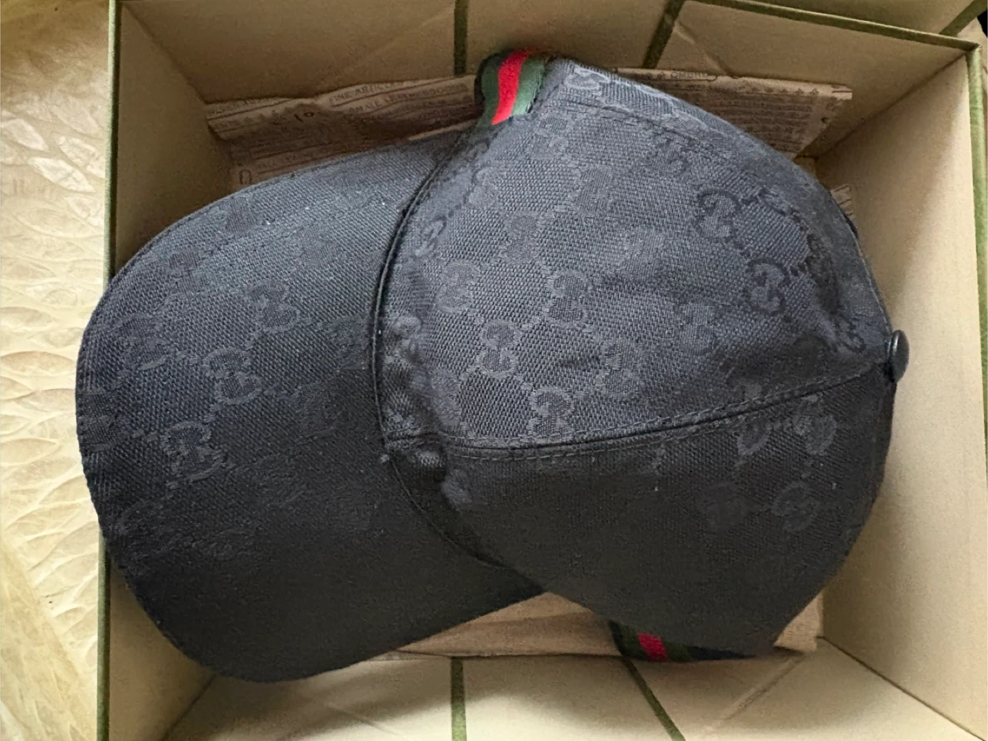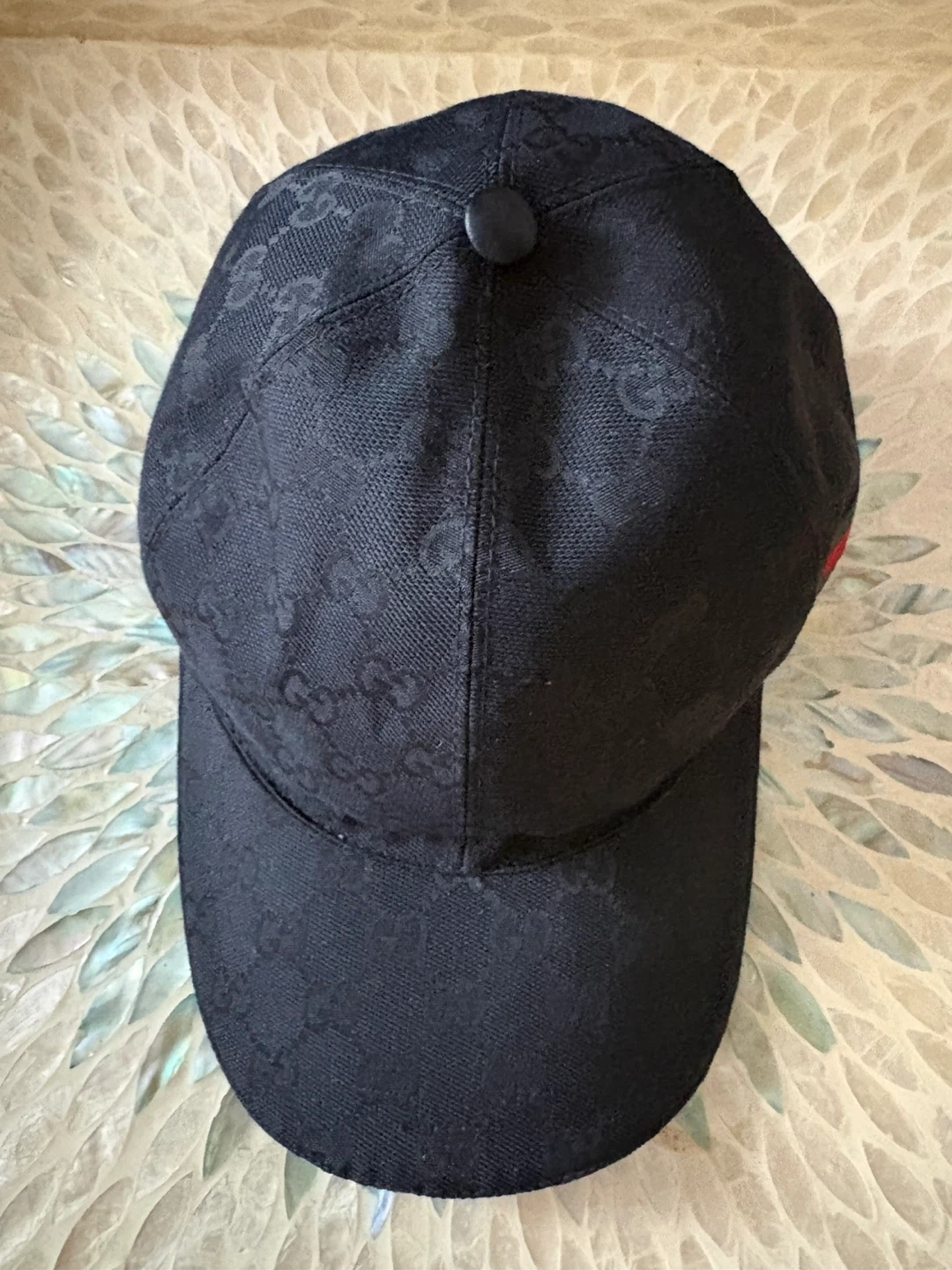 This is a black Gucci baseball cap with the signature GG pattern. It comes with the original box, dust bag, and authenticity booklet. A great accessory for any fashion enthusiast! Brand new condition! Size XL. Pick up in Chestermere.
