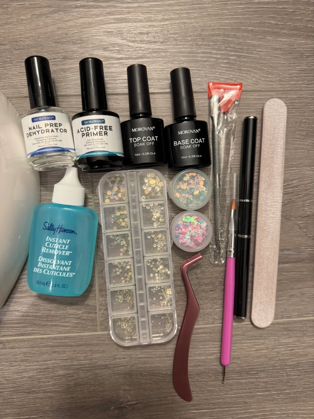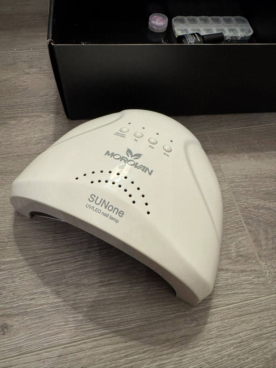 44Morovan nail kit. Includes UV/LED lamp, primers, top coats, rhinestones, tools, and more. Perfect for at-home manicures.
