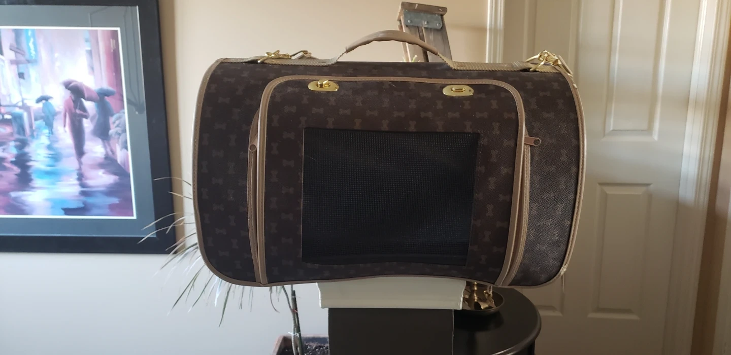 Brown Pet Carrier Bag with Bone Pattern