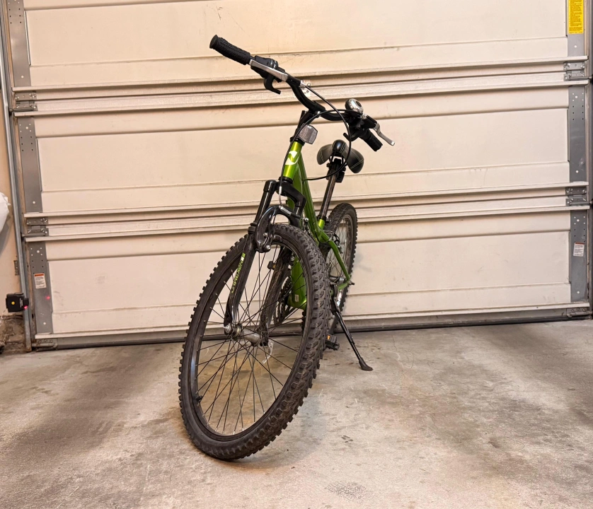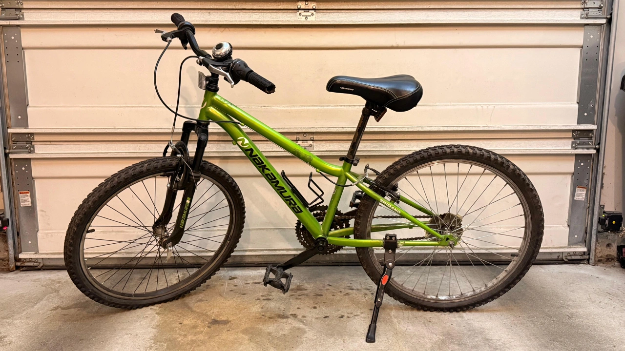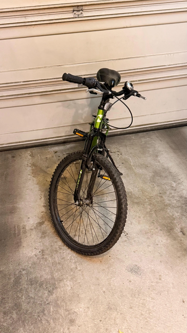 10Selling a green Nakamura mountain bike. It's in good condition and ready for some trails or neighbourhood rides. A bell is attached to the handle bars. It also has a kickstand. Gears modified (no gears) Frame size: 12" Tire size: 24"