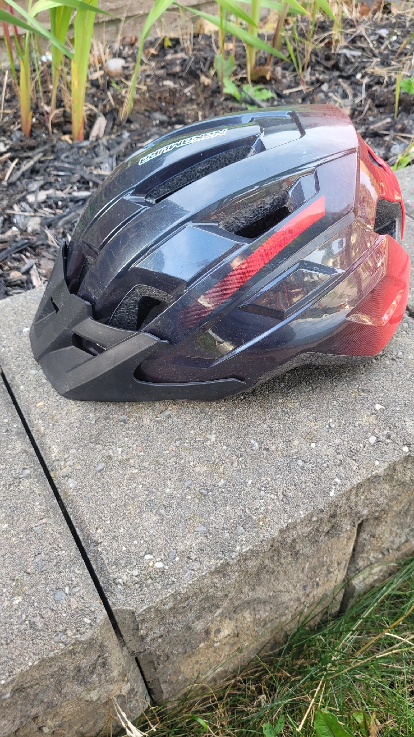 82Selling a Nakamura bike helmet in black and red. It's in great condition and ready for your next ride! Universal fit, 54-58 cm.
