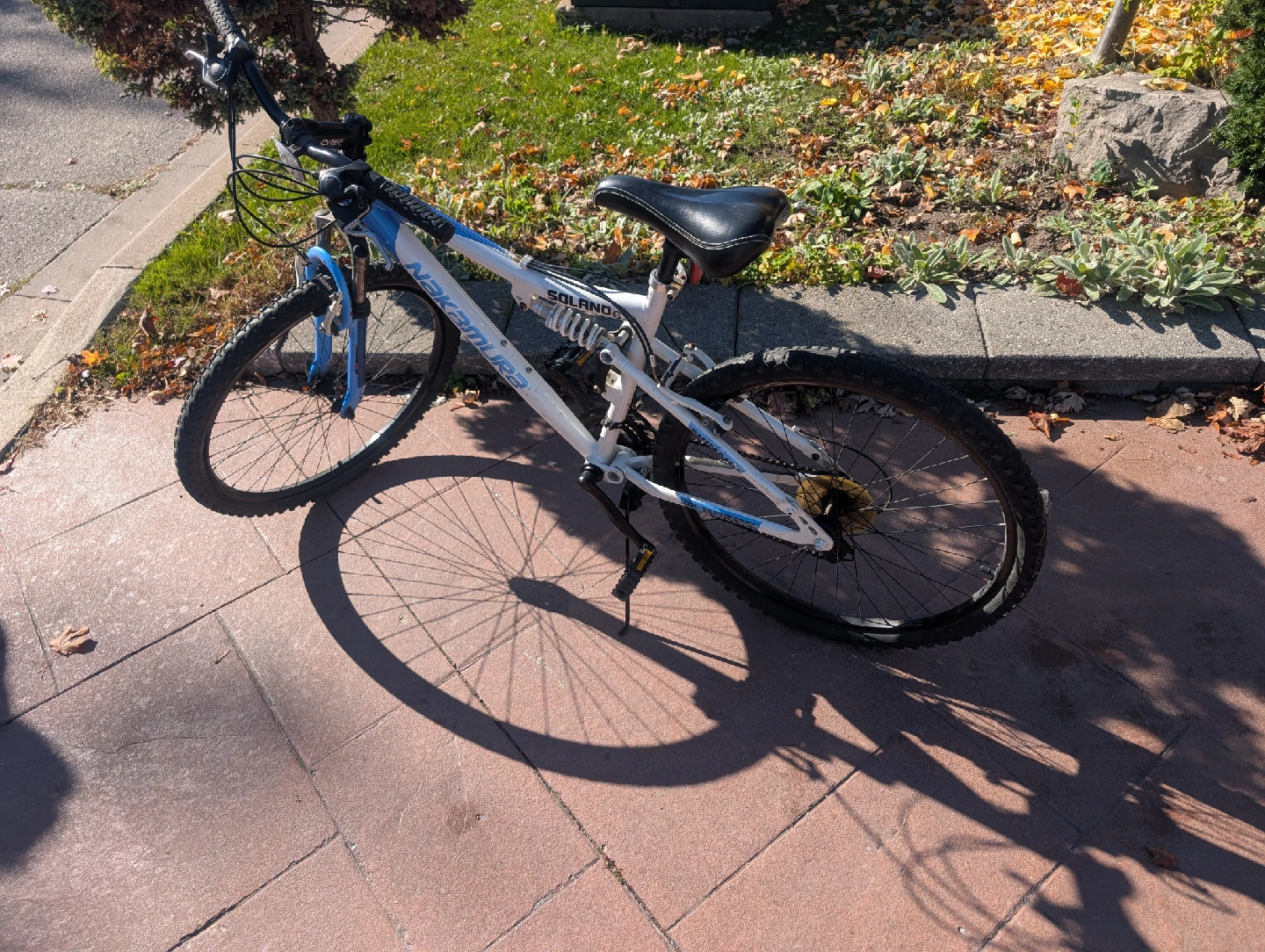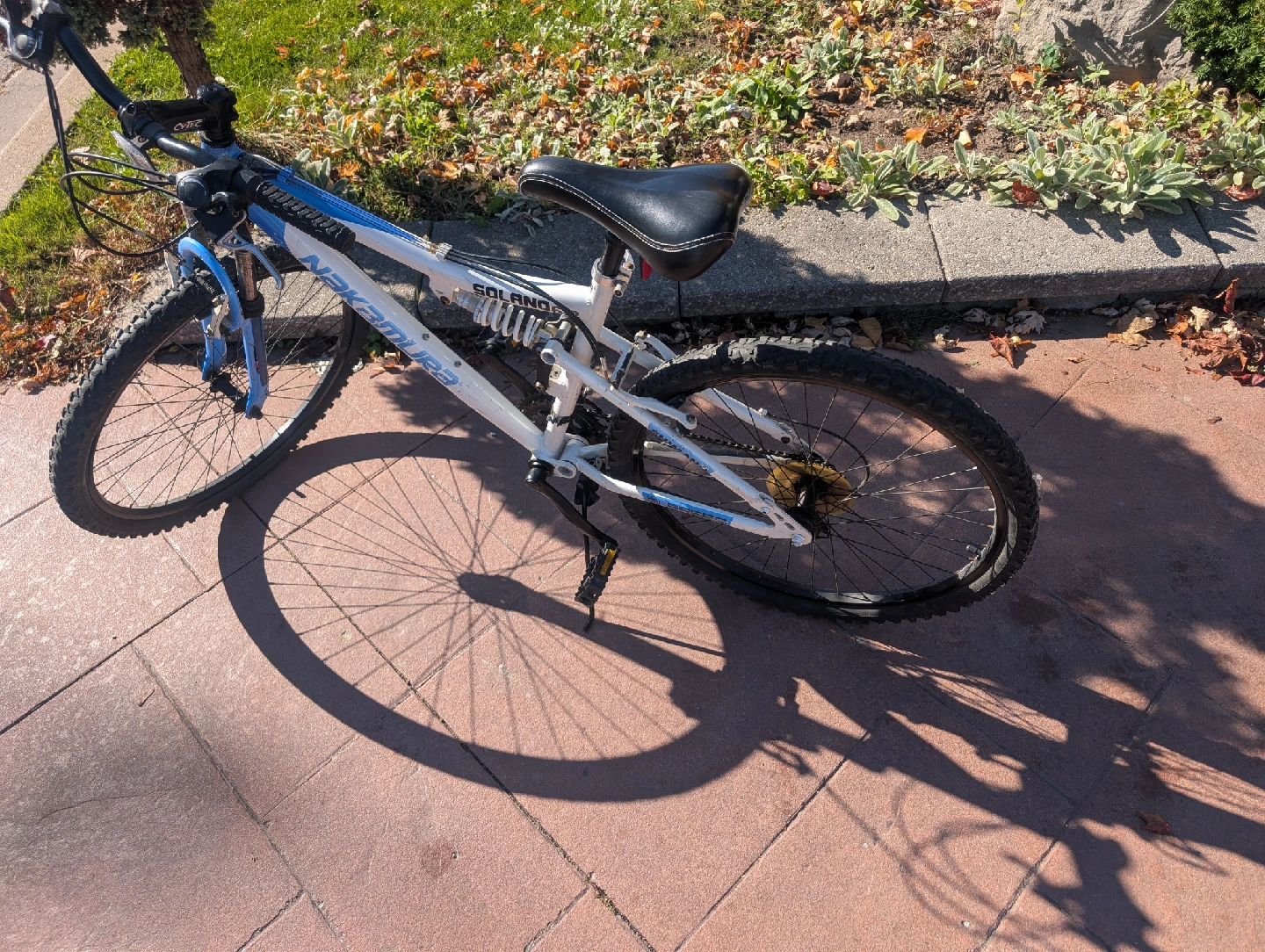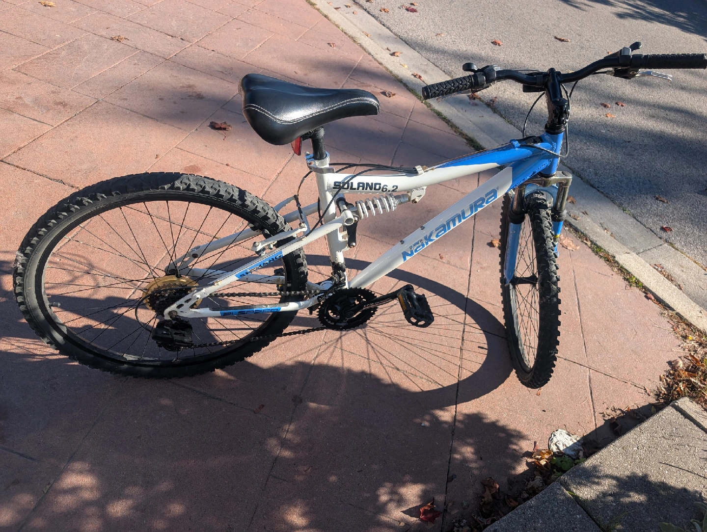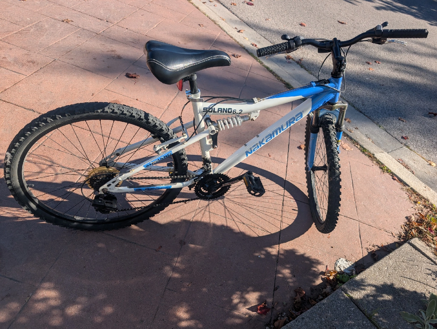 88Selling a Nakamura Solano 6.2 mountain bike! It's in good condition and ready for some outdoor adventures. The bike features a white and blue frame, a comfortable seat, and sturdy tires. Perfect for trails or city riding! Works perfectly well including the gears and brakes.