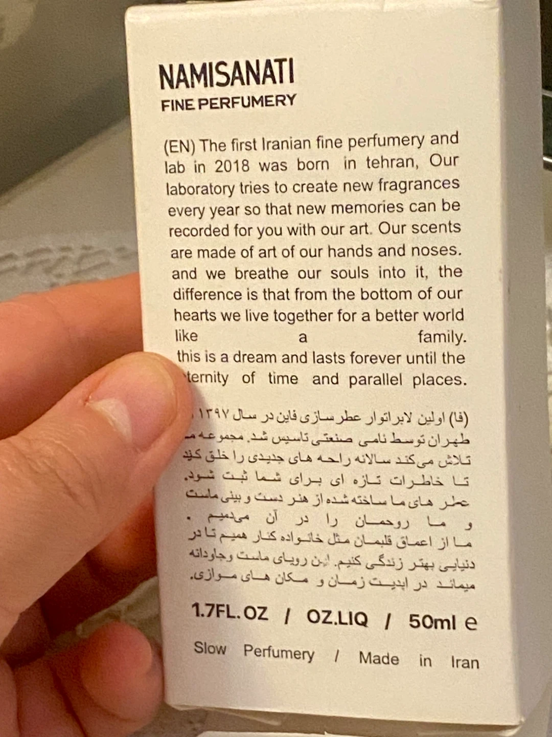 Selling a bottle of Namisanati Salted Caramel perfume. It's a 50ml Eau de Parfum. The original price was $120.00. This fine perfumery was born in Tehran in 2018. It’s made in Iran. Smells amazing!