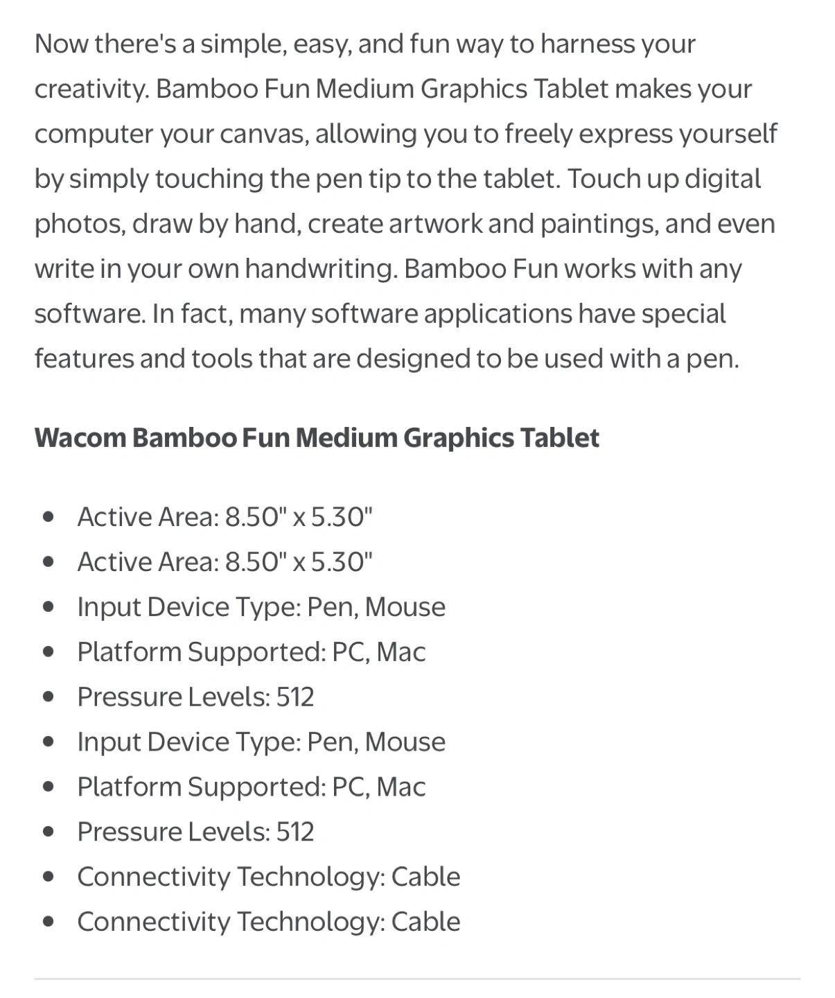 Selling a Bamboo Fun pen tablet by Wacom! It comes in the original box with all included components. Perfect for digital art and design projects
