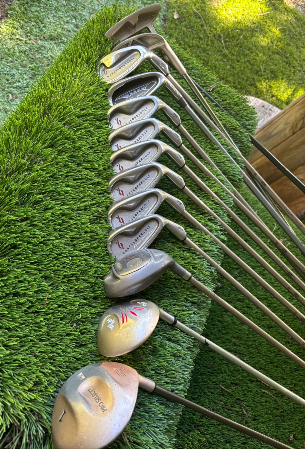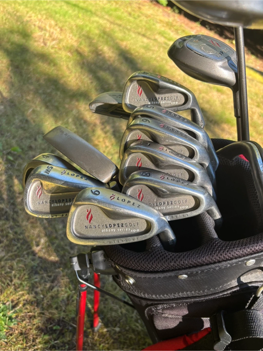 60Selling a set of Ladies Nancy Lopez Albany Series 10.0 golf clubs! The set includes 13 various irons, putter, hybrid fairway wood and drivers. They're used but still have plenty of life left in them. Perfect for someone looking to upgrade their current set or a beginner getting into the game. Will include free bag not shown.