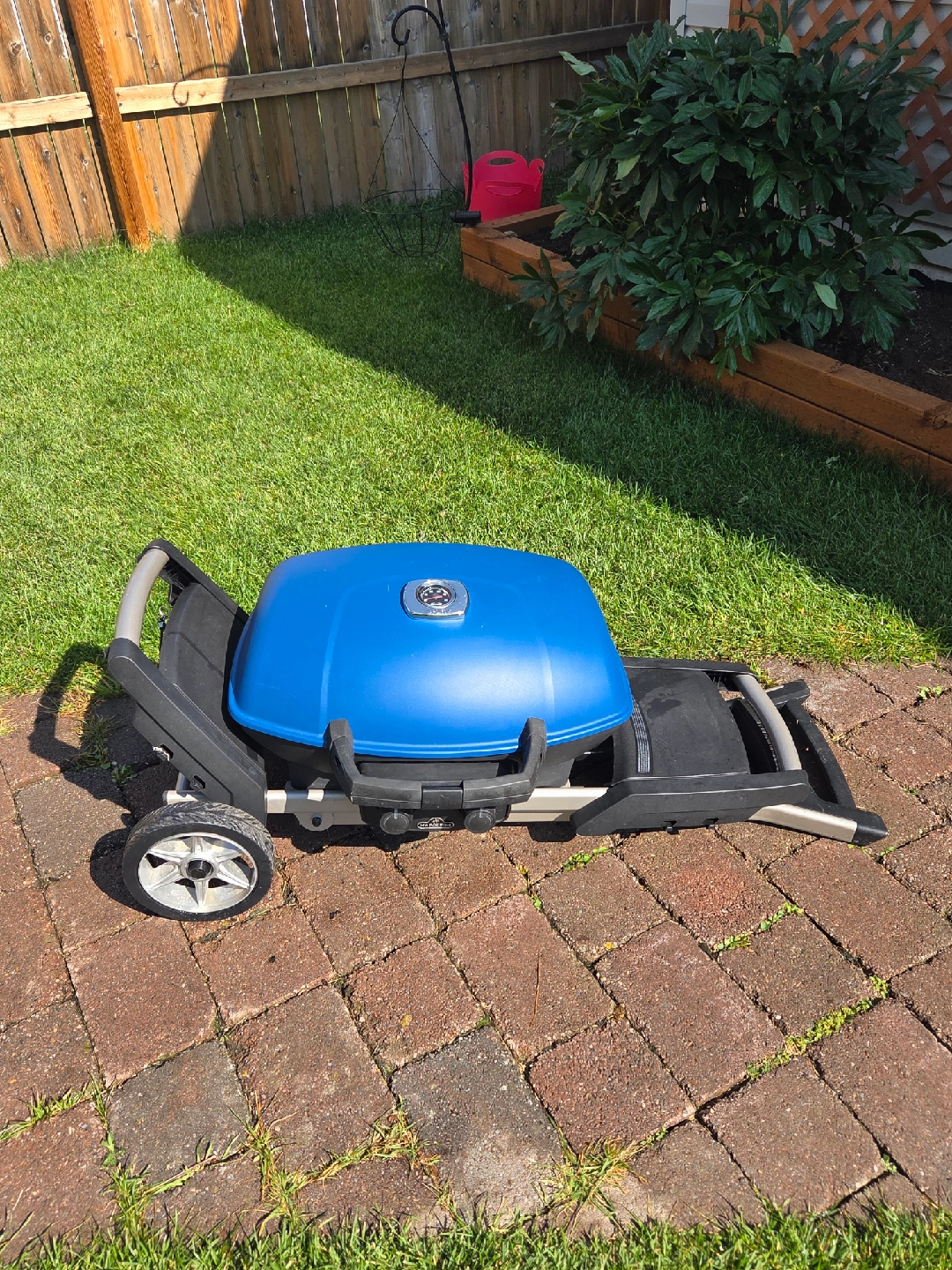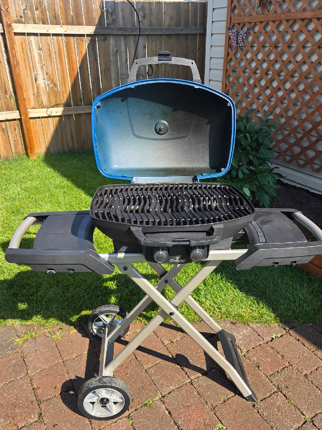 travel q napoleon.2 burners.excellent cond.used periodically with rv.bought diff.style.can sell with or without 20lb.tank.also designed to accept 1lb.bottles.retail $669.00 approx.