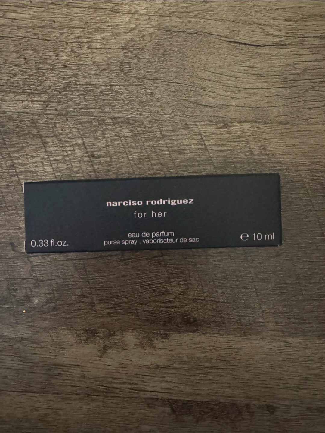 40Selling a Narciso Rodriguez For Her eau de parfum purse spray. It's the perfect size for your bag or for travel! The bottle contains 10ml (0.33 fl.oz.) of fragrance
