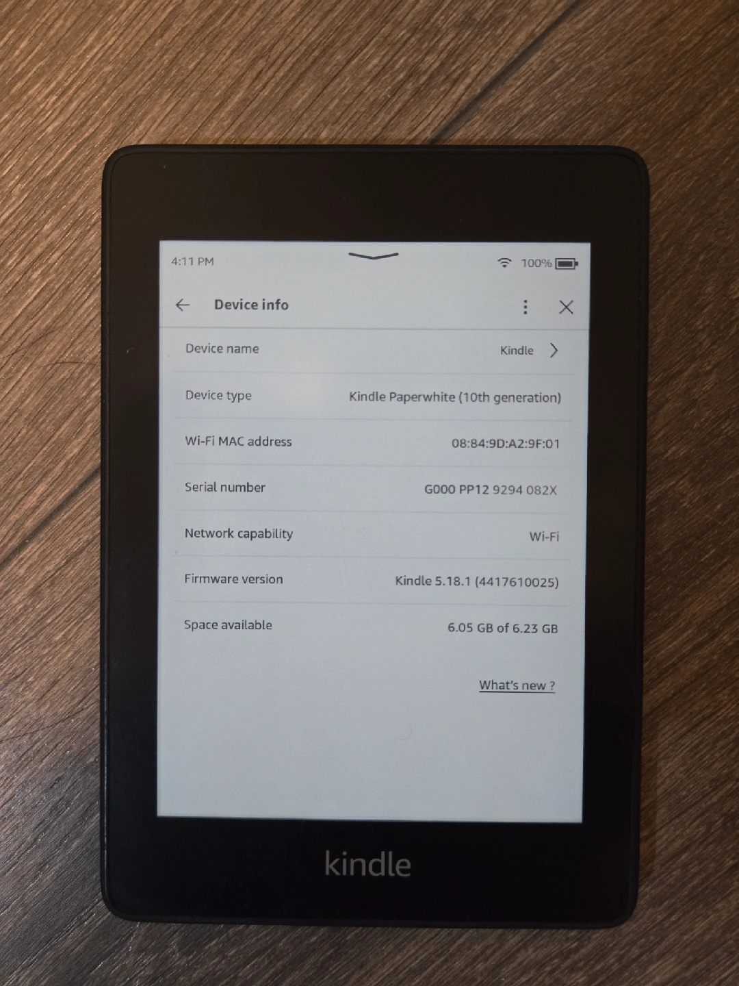 Selling a Kindle Paperwhite (10th generation) in great condition. It has 6.05 GB of available space. Perfect for reading on the go! Can provide USB charger.