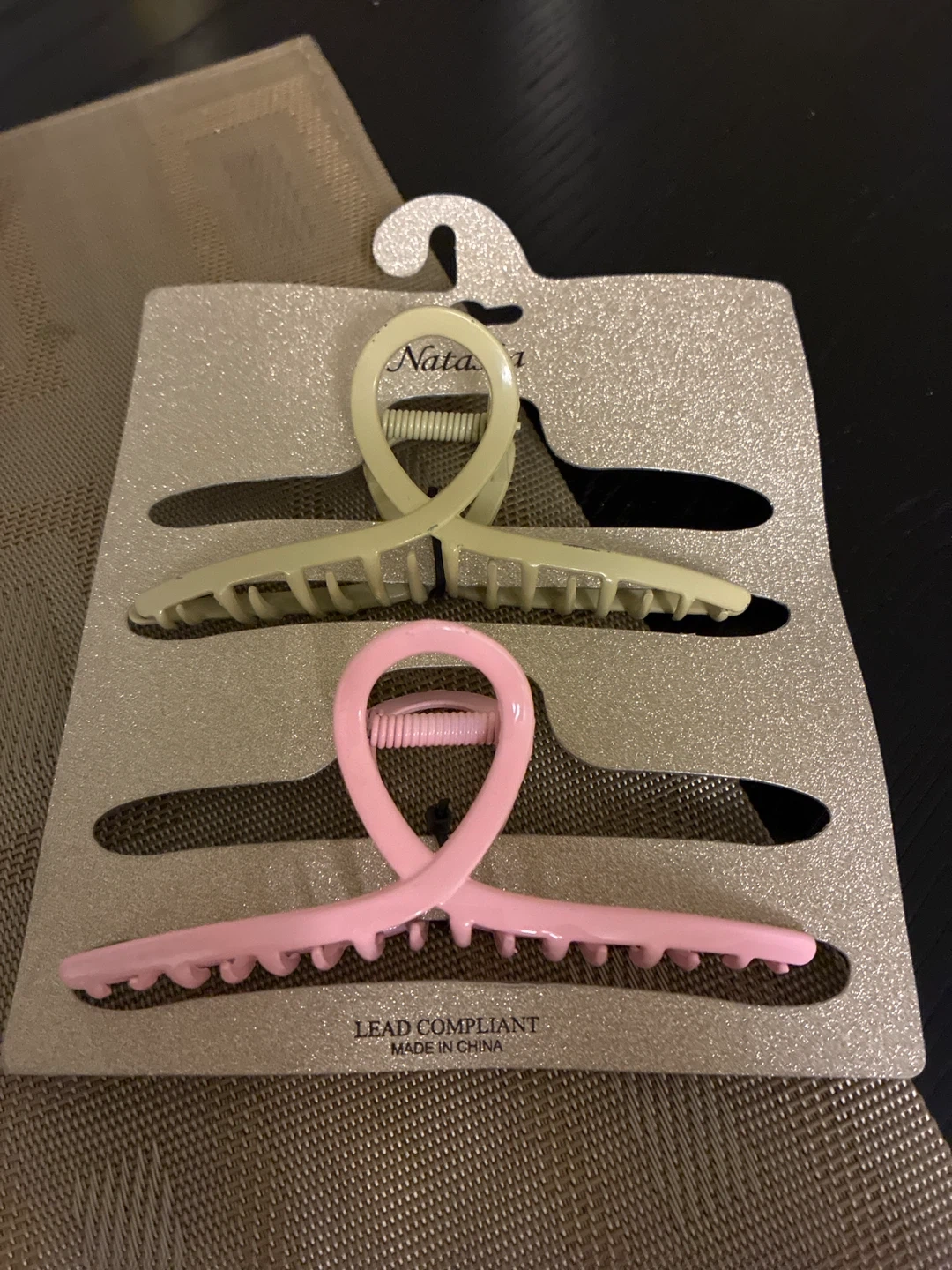 32Two cute metal hair claw clips from Natasha ! One is a soft pink and the other is a light beige. They're both brand new and ready to add a touch of style to your hair. ($5 for two).
