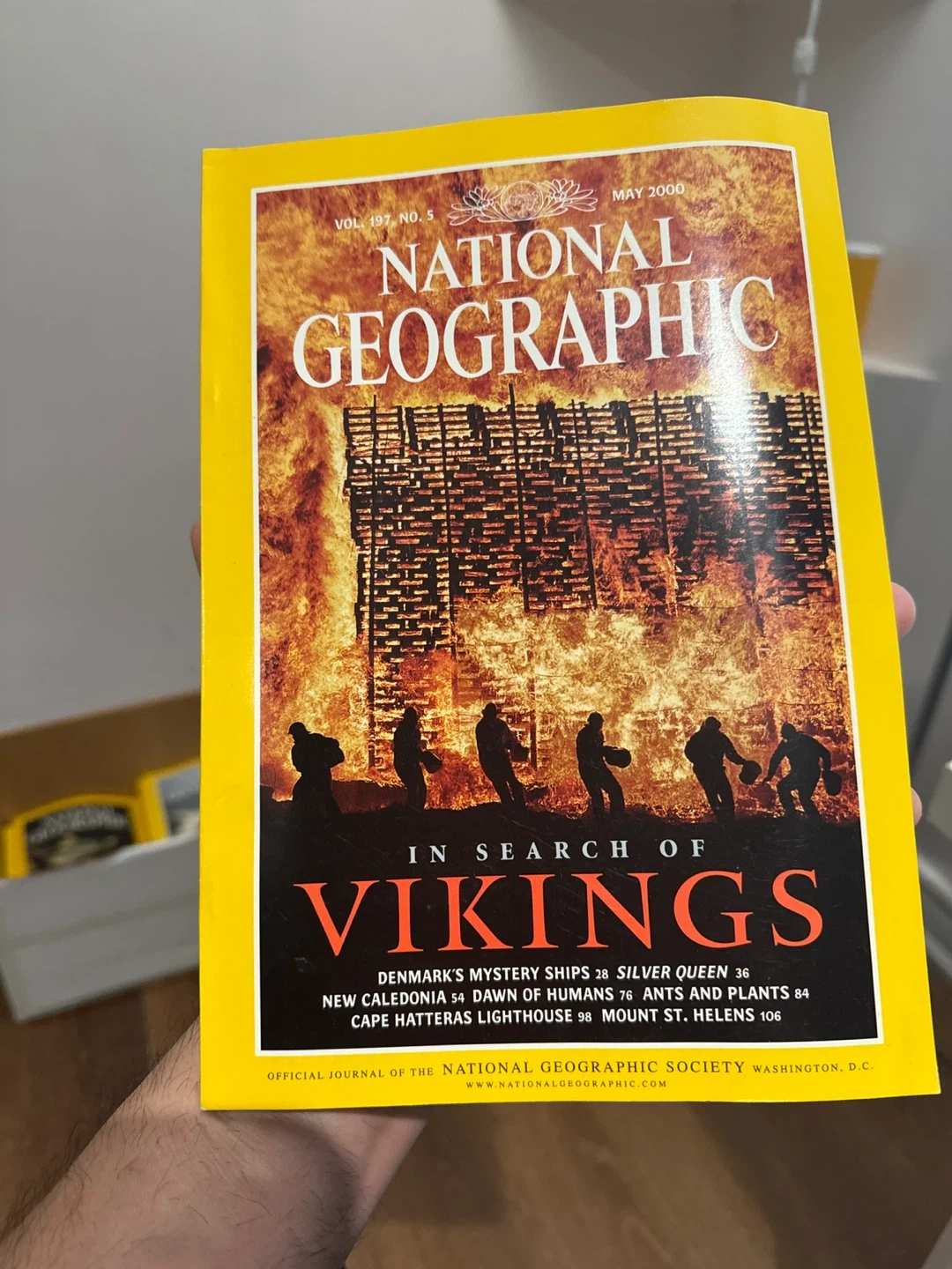 65Offering a National Geographic magazine from May 2000. This issue features 'In Search of Vikings' and includes articles on Denmark's mystery ships, New Caledonia, Cape Hatteras Lighthouse, and more!