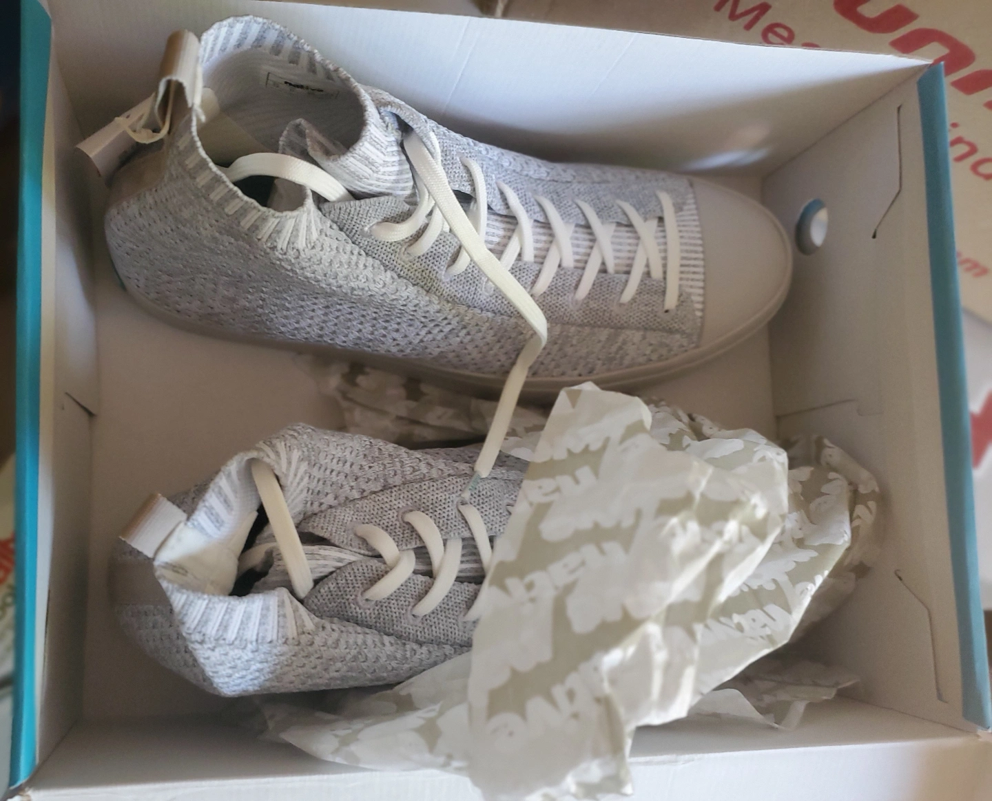 Men's high-top sneakers. Mist grey colour. Knit fabric upper. New in box.