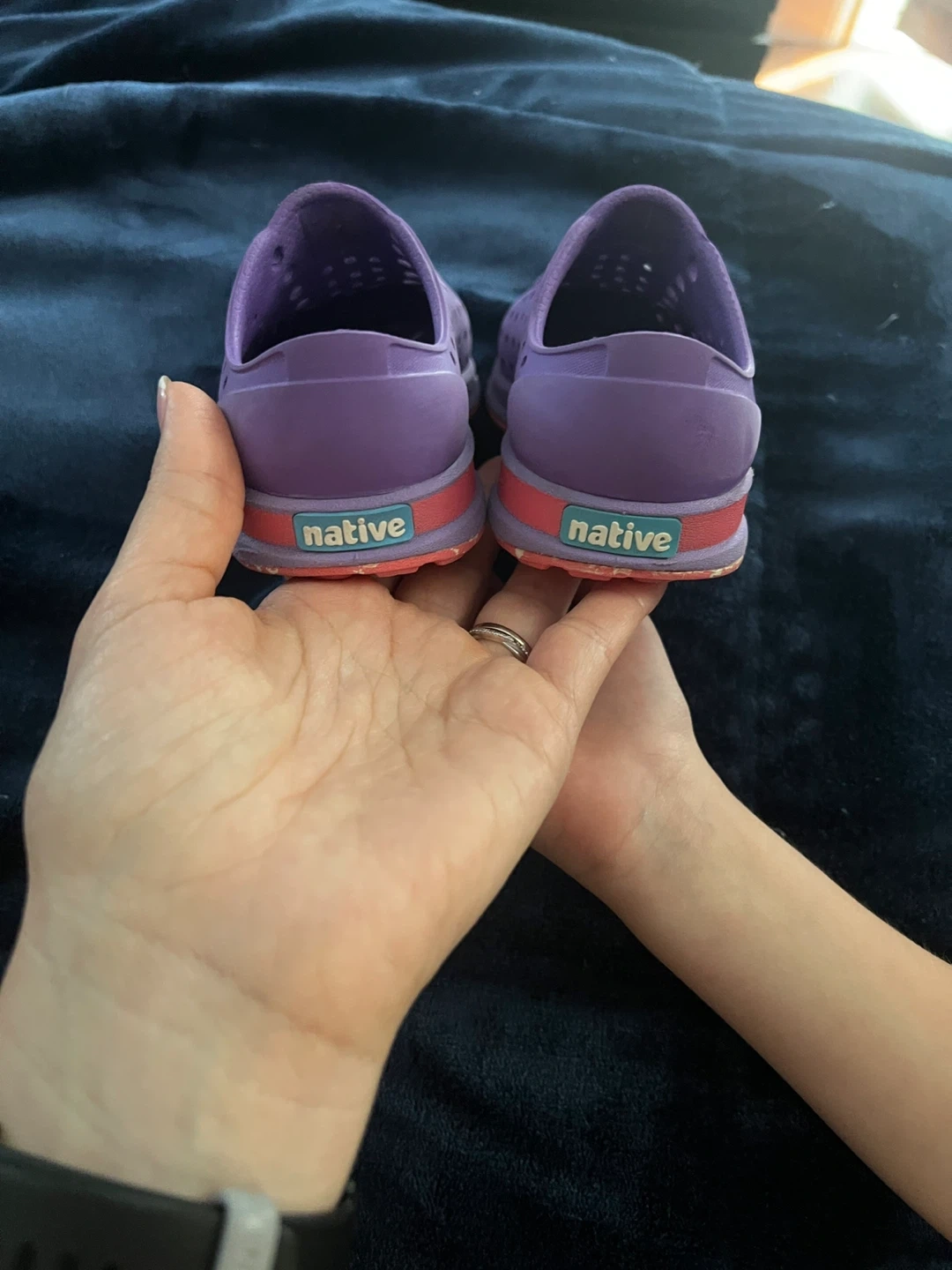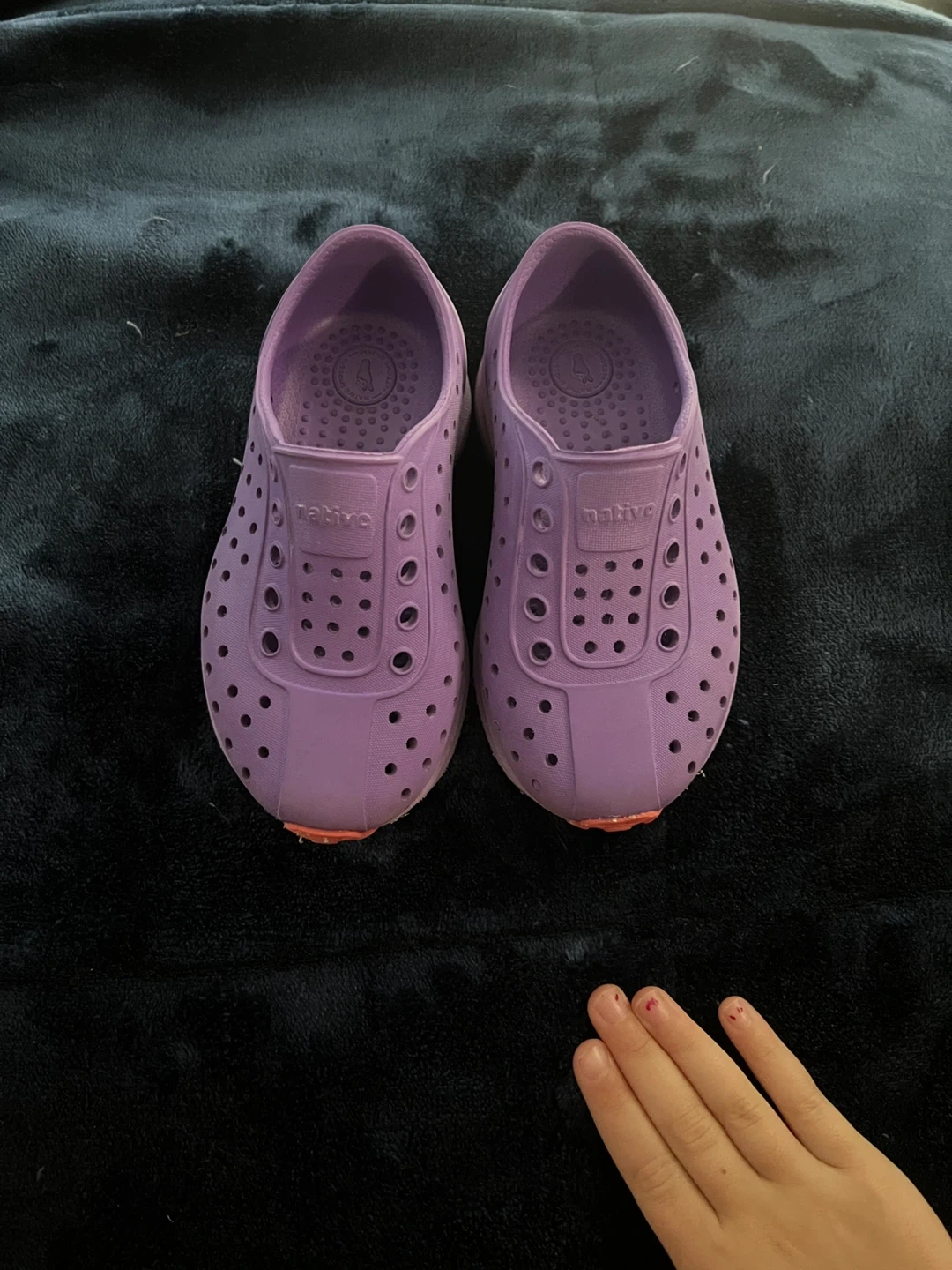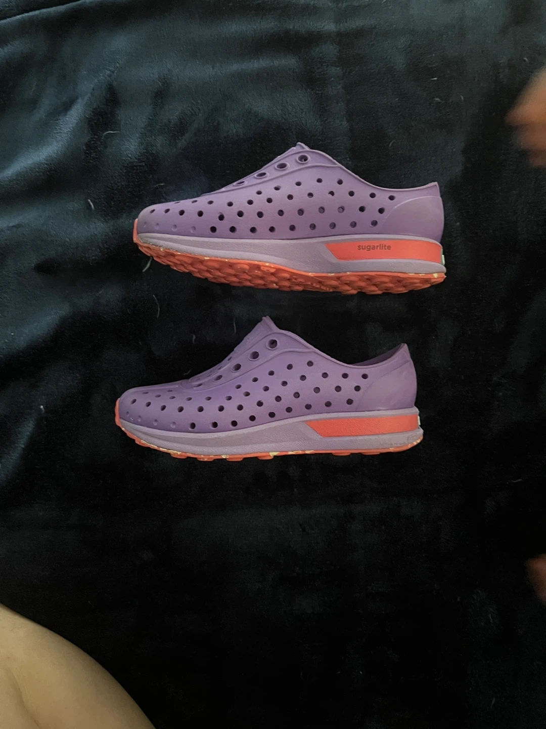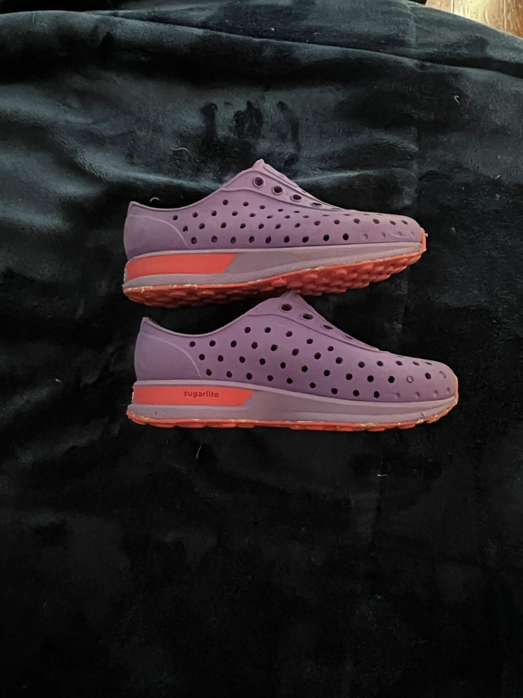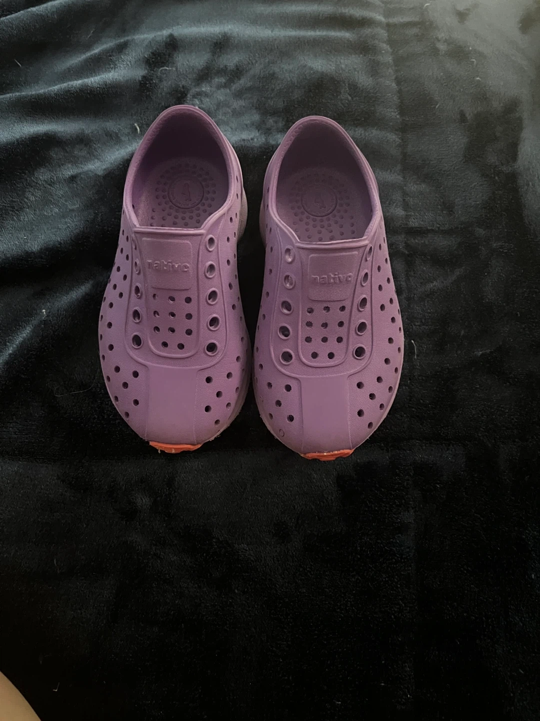 10These purple Native shoes are in great condition and ready for a new home! They are a size 7 (usually 2 to 3 years old) and perfect for kids who love to play outside