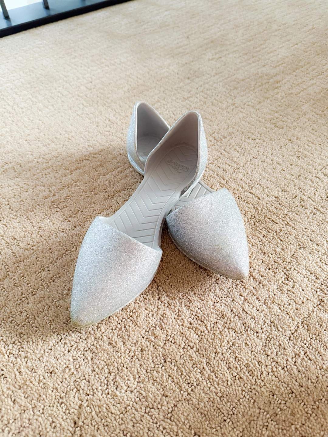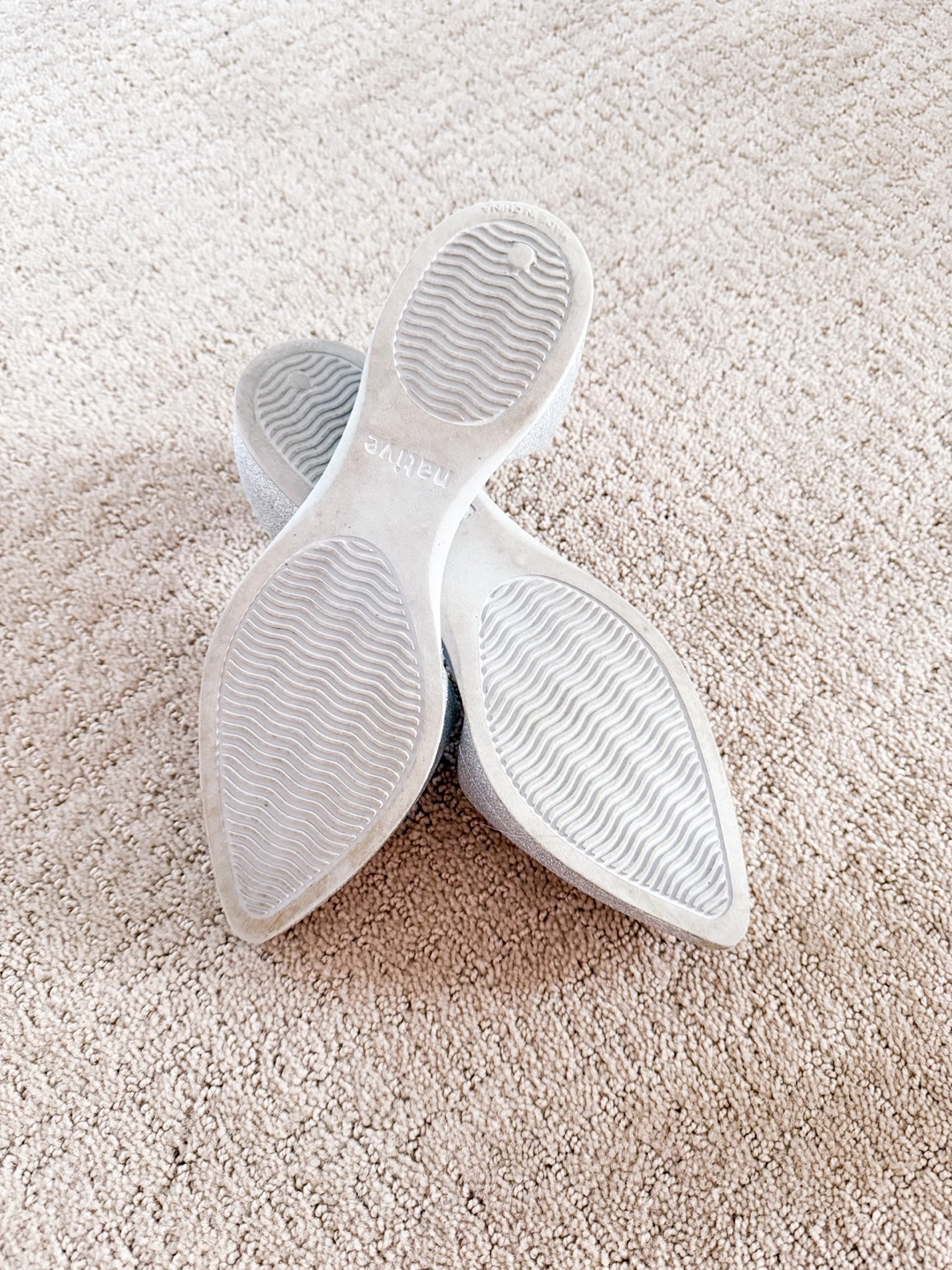 These cute silver glitter flats by Native Shoes are perfect for adding a bit of sparkle to your step! They're in great condition and a size 6. Lightweight and comfy, they're ready for a new home!