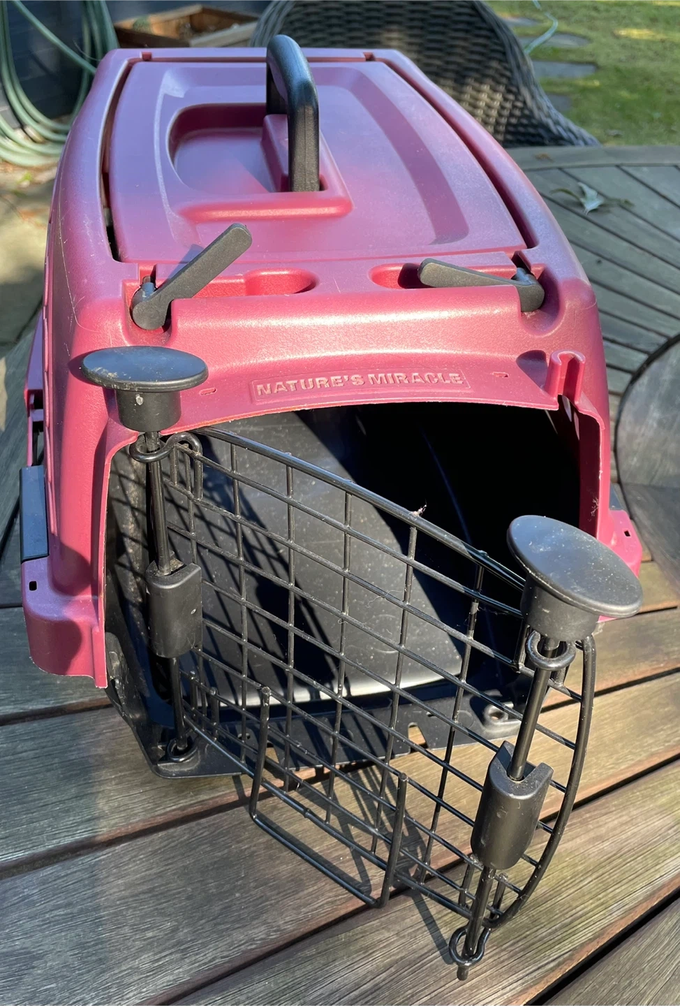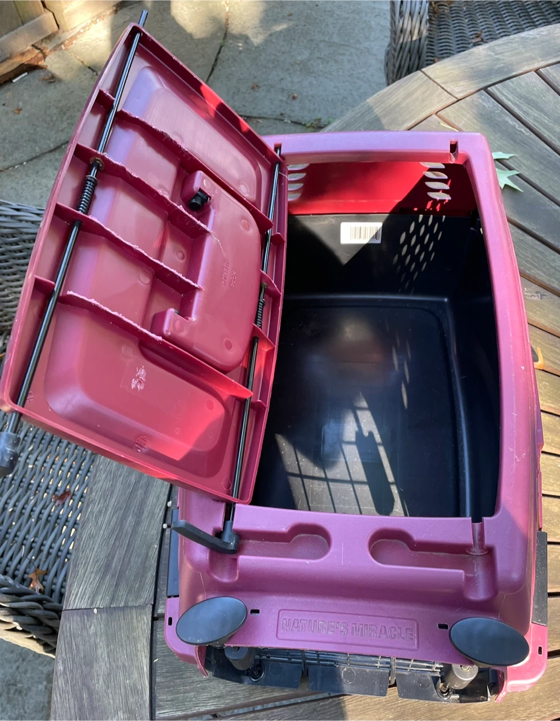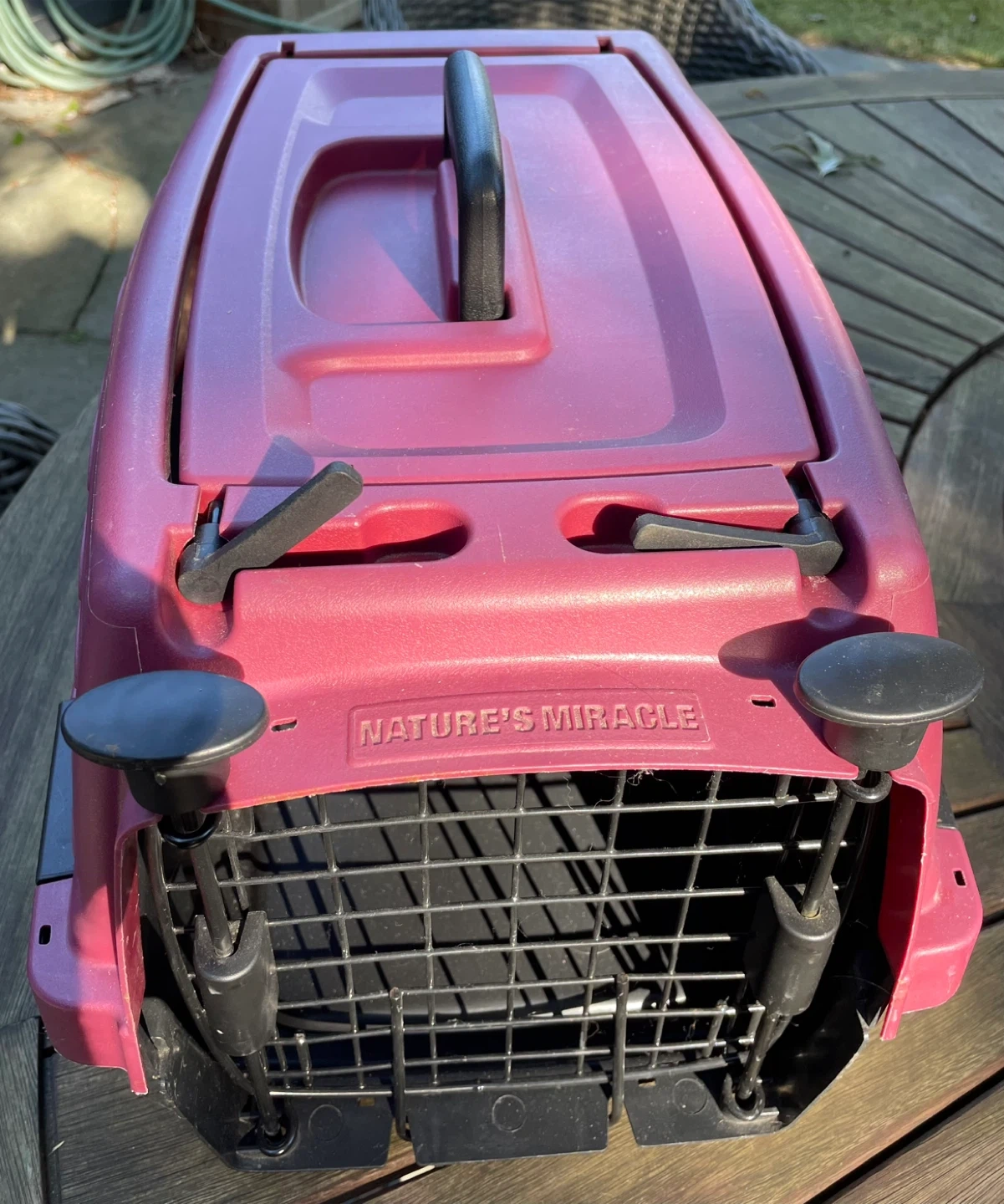 10Selling a Nature's Miracle pet carrier! It's in great shape and ready for your furry friend's adventures. The carrier is a stylish pink and black, and it's perfect for vet visits or travel