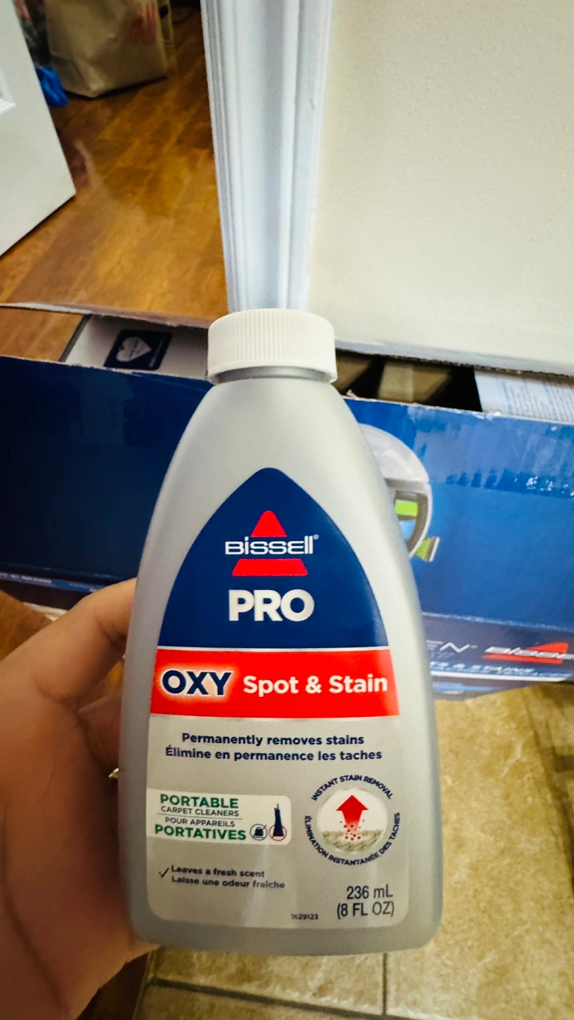 Portable carpet and upholstery cleaner. Includes Oxy Spot & Stain cleaner. Great for removing tough spots and stains. Just Used once