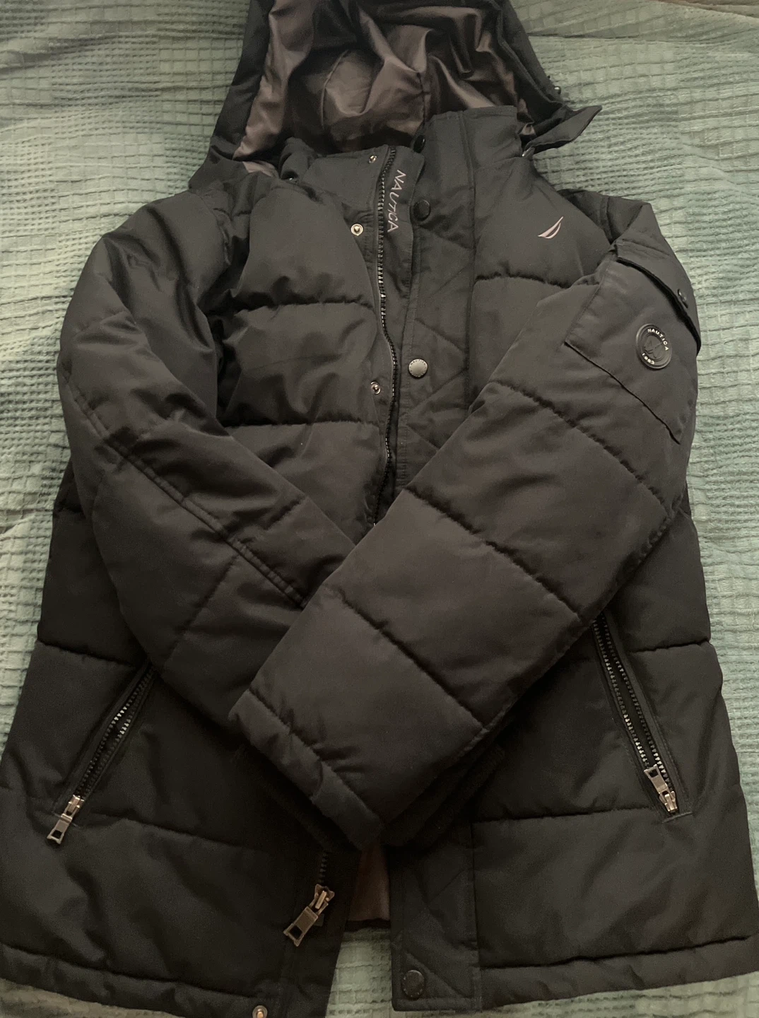 Hi, I'm selling a cozy Nautica puffer jacket in size small for women. It's a stylish and warm choice for those chilly Canadian days. The jacket is black and features the Nautica logo. Perfect for staying snug and looking good! Pick-up only. (In Scarborough.) Thank you for your interest!