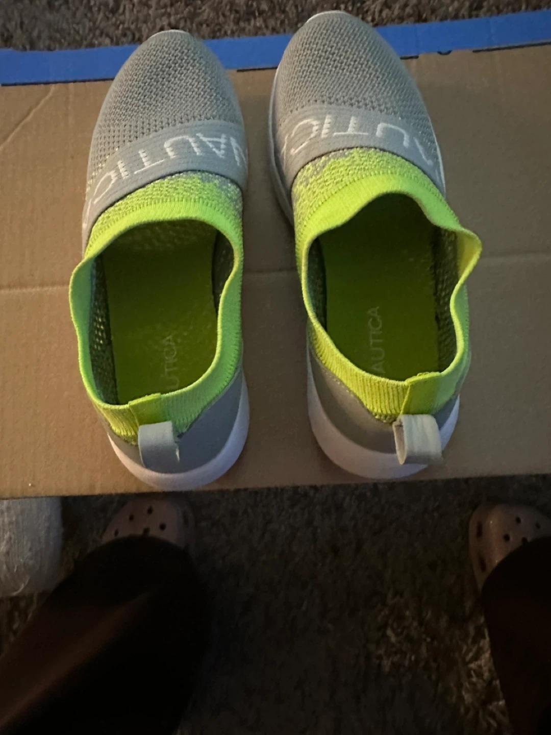 102Selling a pair of Nautica slip-on sneakers in grey and neon green! They're super comfy and easy to wear. The sneakers have a sporty look with the Nautica logo across the front. Great for casual outings or a quick trip to the store! Cash only. Pick up downtown!