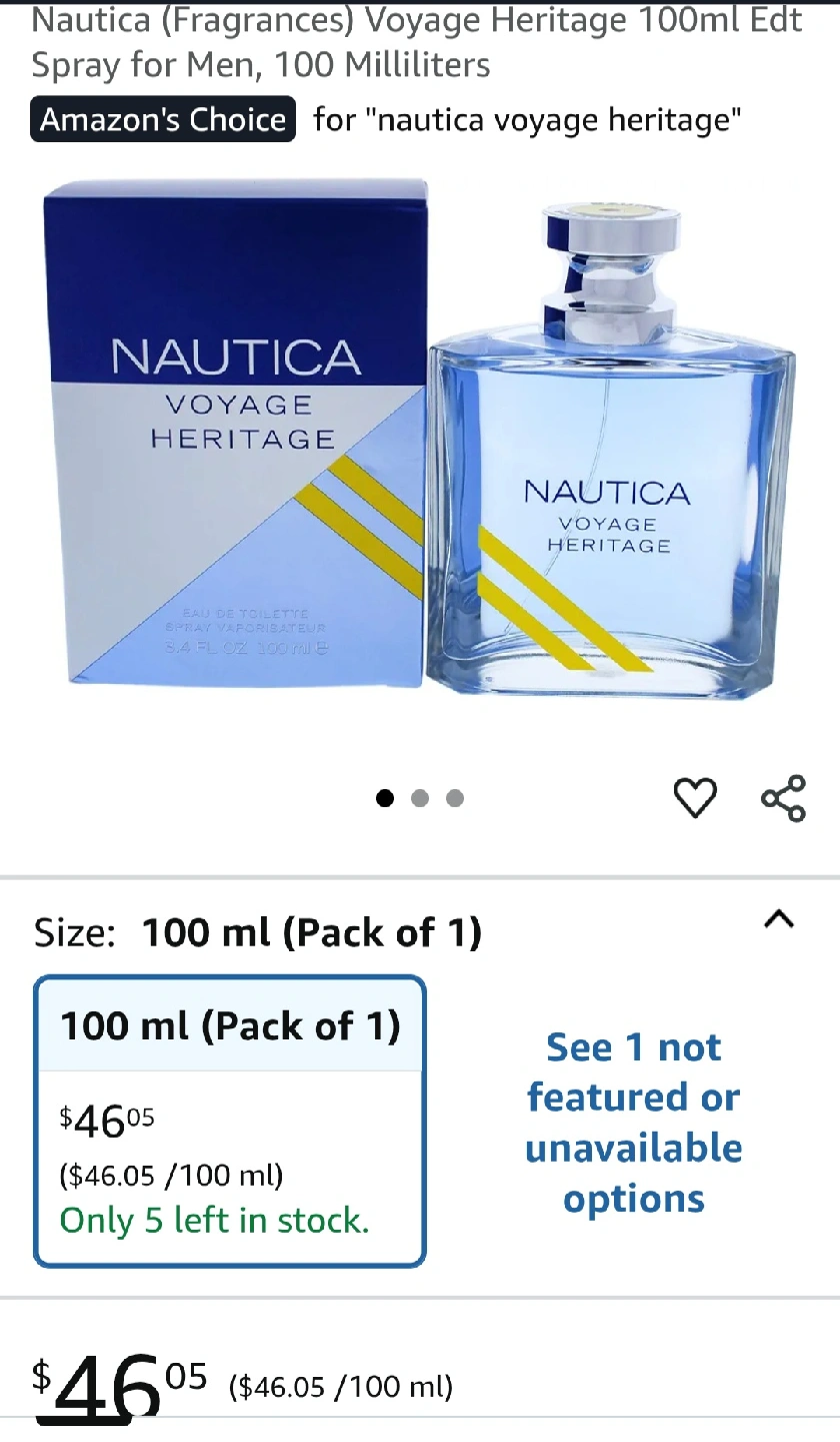 Selling a bottle of Nautica Voyage Heritage Eau de Toilette for men. It's a 100ml spray. Comes with the original box