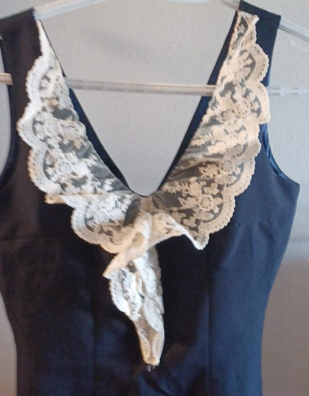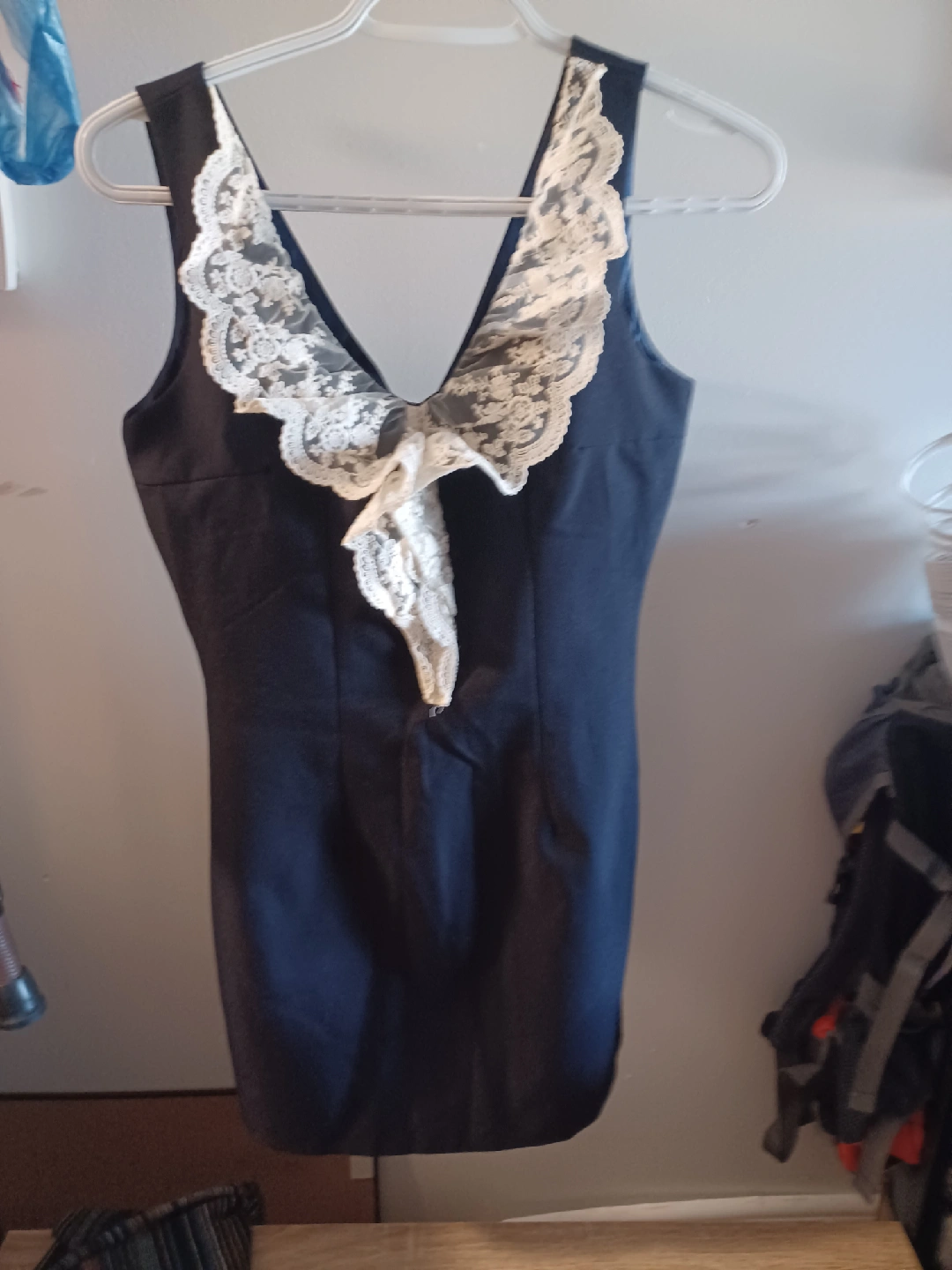 A lovely navy blue dress with delicate lace detailing! It's in great condition and ready for a new home. Perfect for a special occasion or a night out