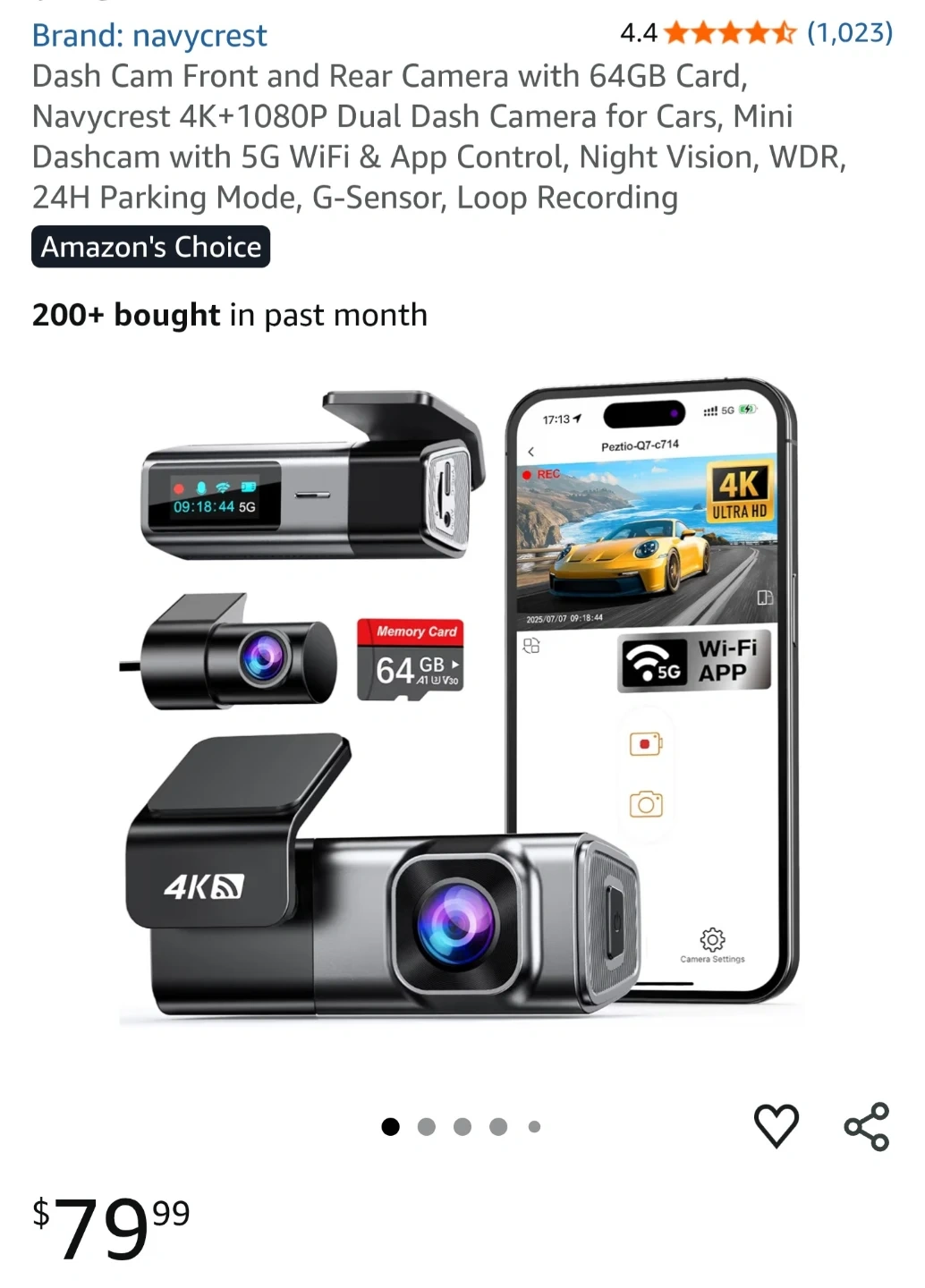 99Selling a Navycrest Q7 4K+1080P front and rear 5G WiFi dash cam. It comes with everything you see in the pictures, including the box and user manual. Drive with confidence!