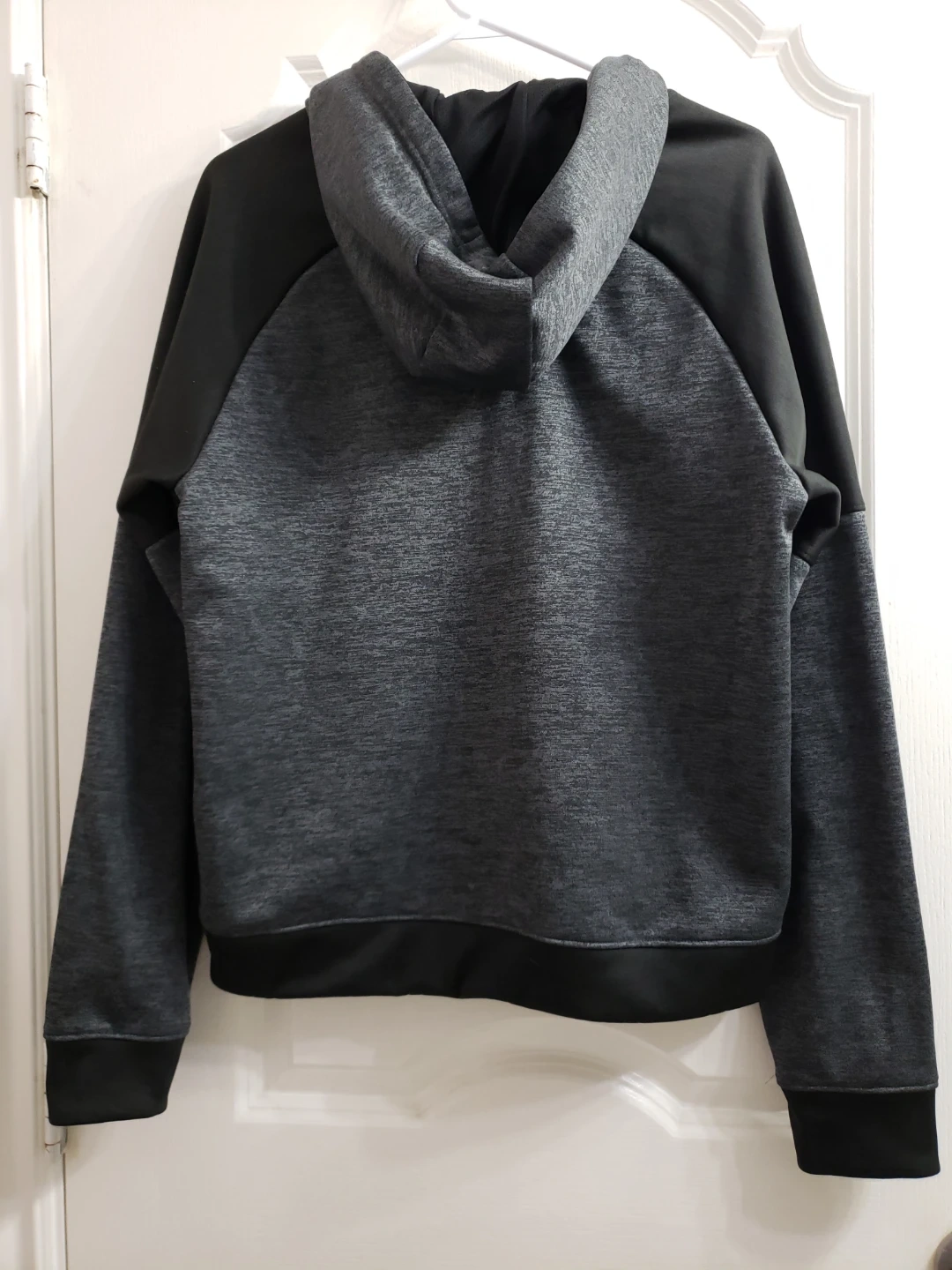 Grey Adidas hoodie with a front pocket. Made with a polyester and cotton blend. It's a size L.Unisex