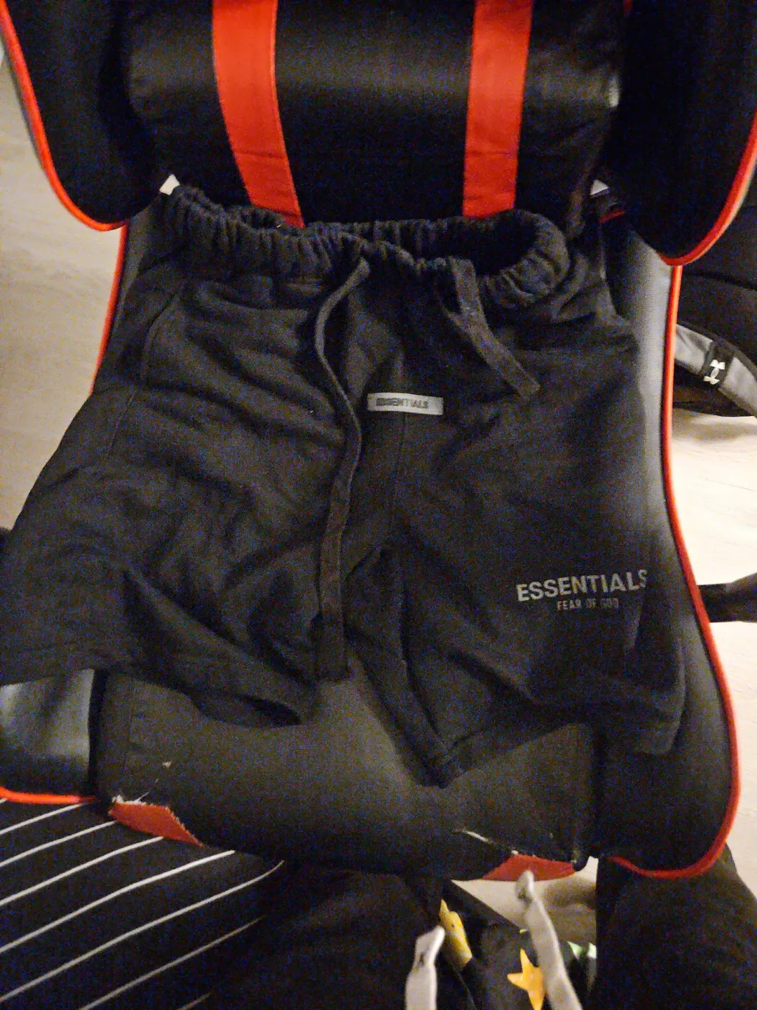 Black sweatpants from Essentials Fear of God. Elastic waistband with drawstring. Comfortable fleece material.