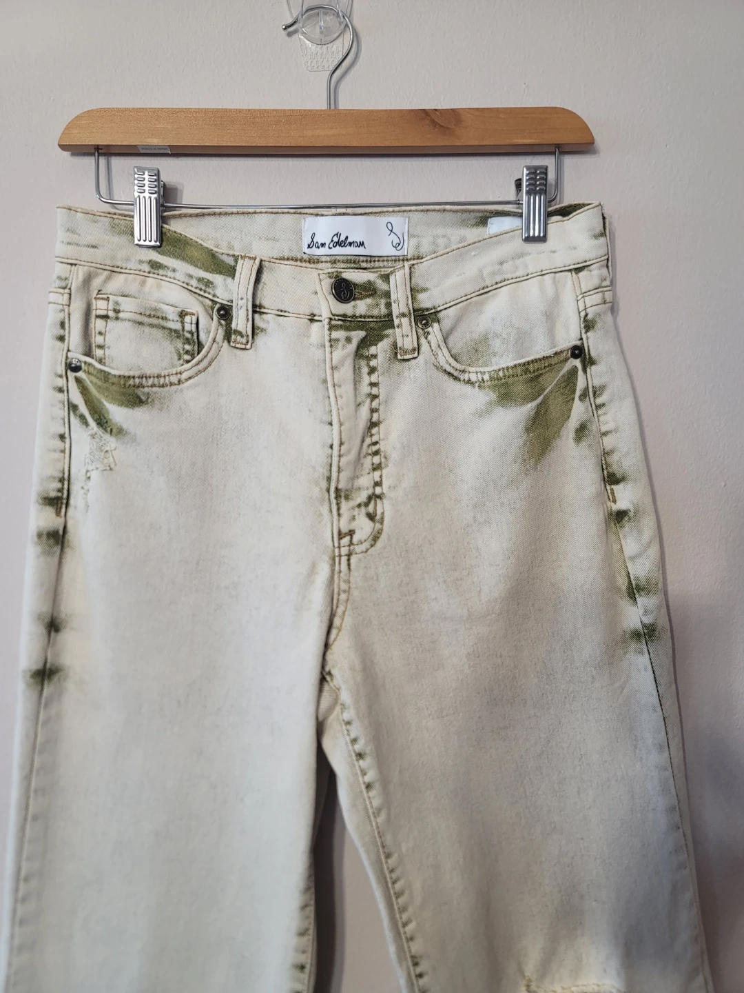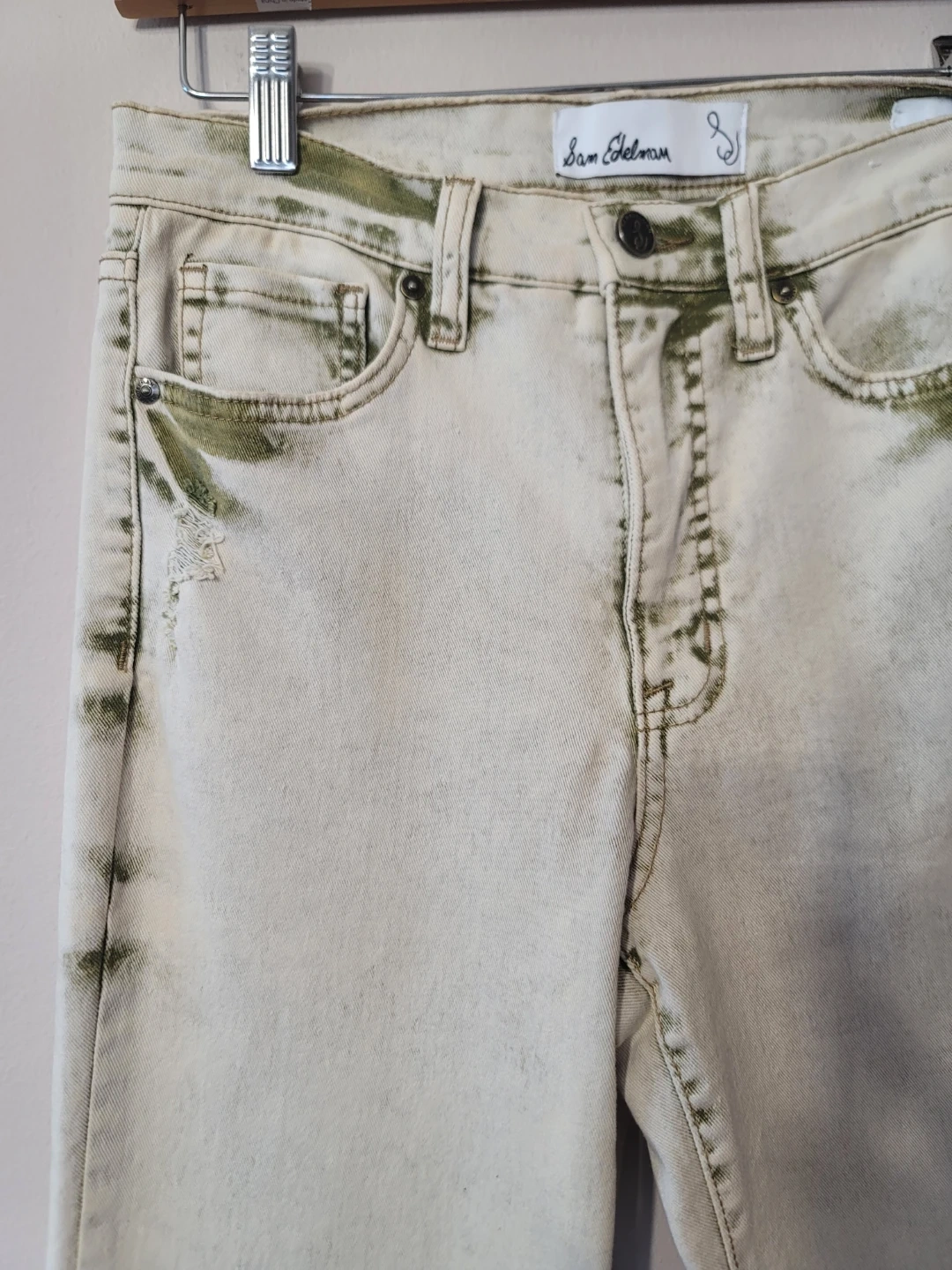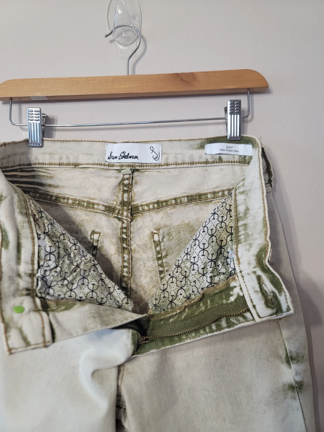 Sam Edelman Bay Flare Jeans Moss Sand Cotton Sz 28 Minimal