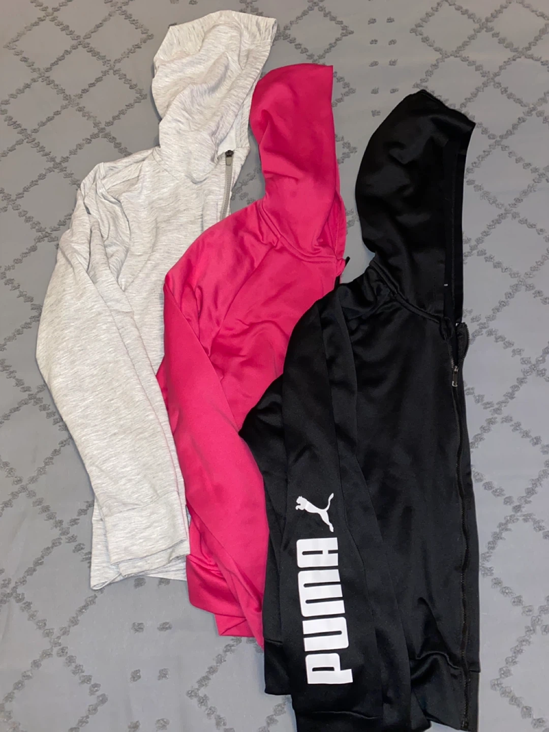 Selling 3 Puma Training Hoodie in size L. It's in great condition and ready for your workouts or casual wear! Available in pink and black and grey.