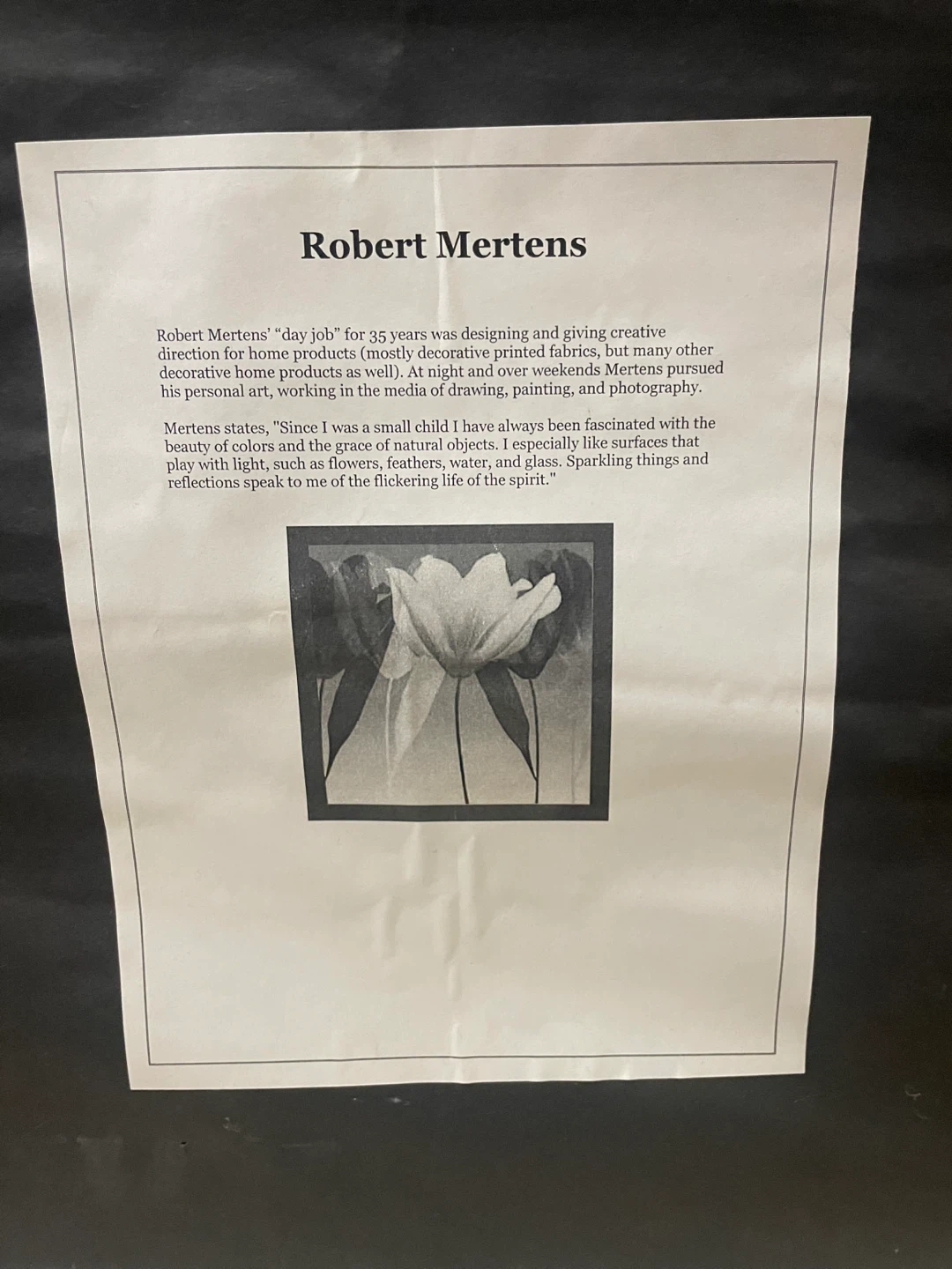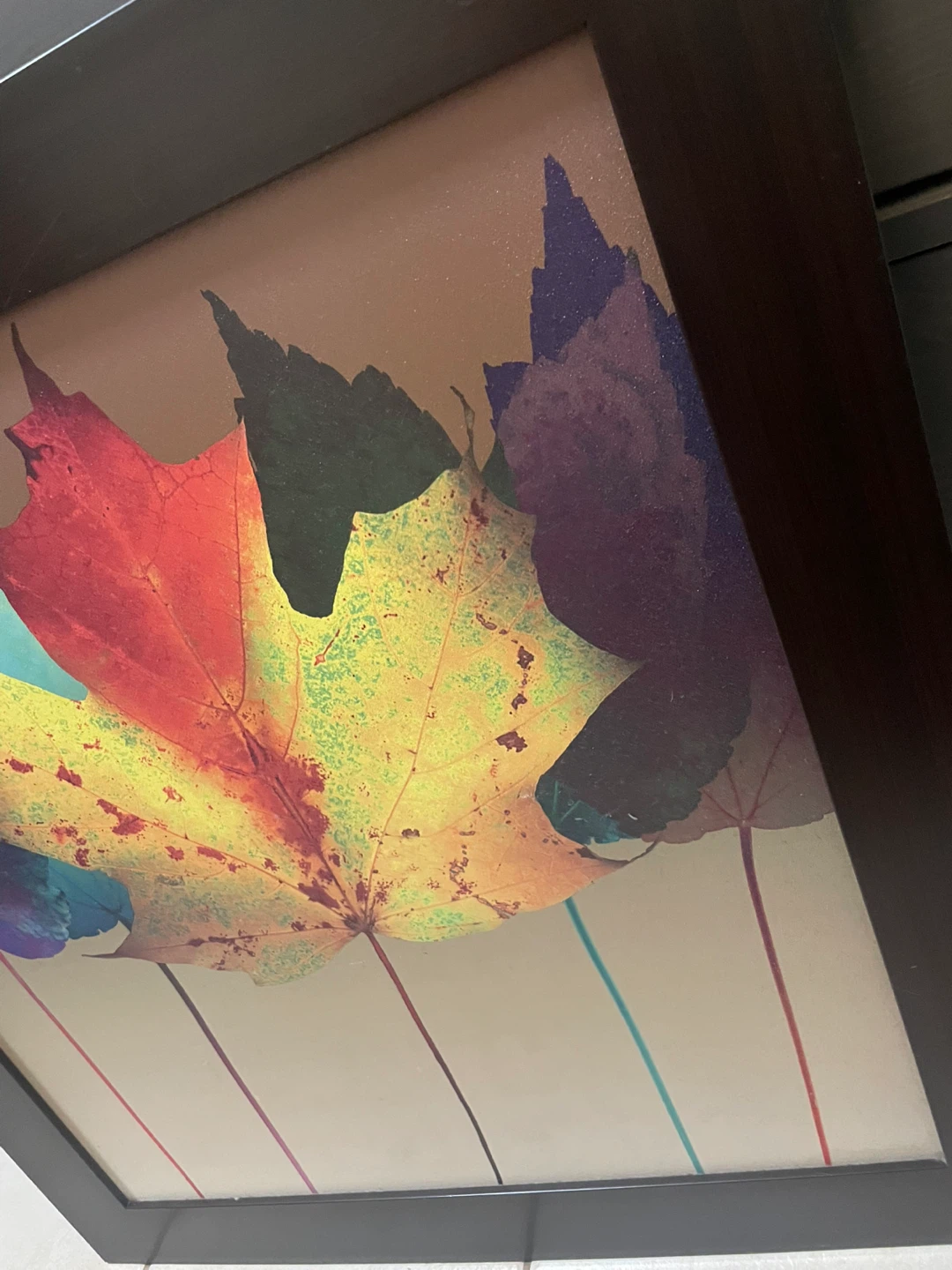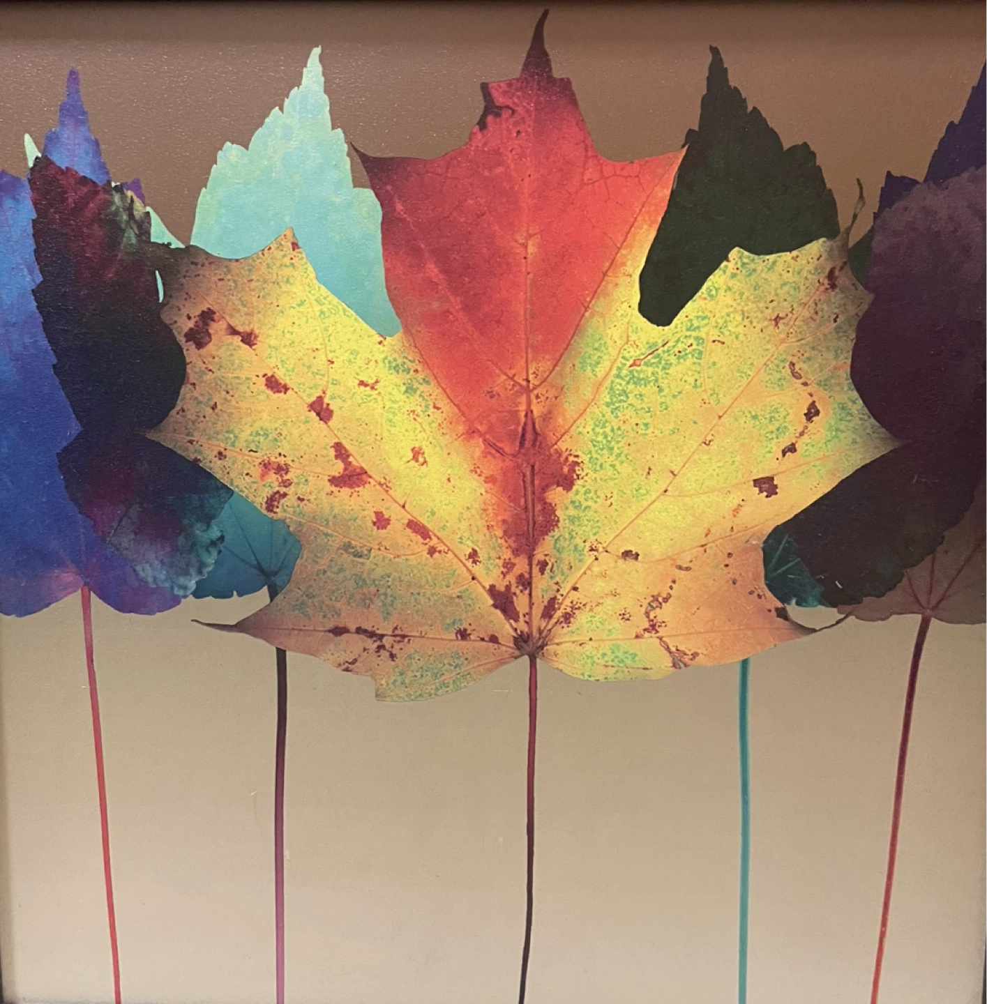“Leaf Dance” by Robert Mertens. Beautiful vivid colours with a dark brown frame — in excellent condition and comes ready to hang. Originally purchased for $$$. Dimensions: 29 x 29”