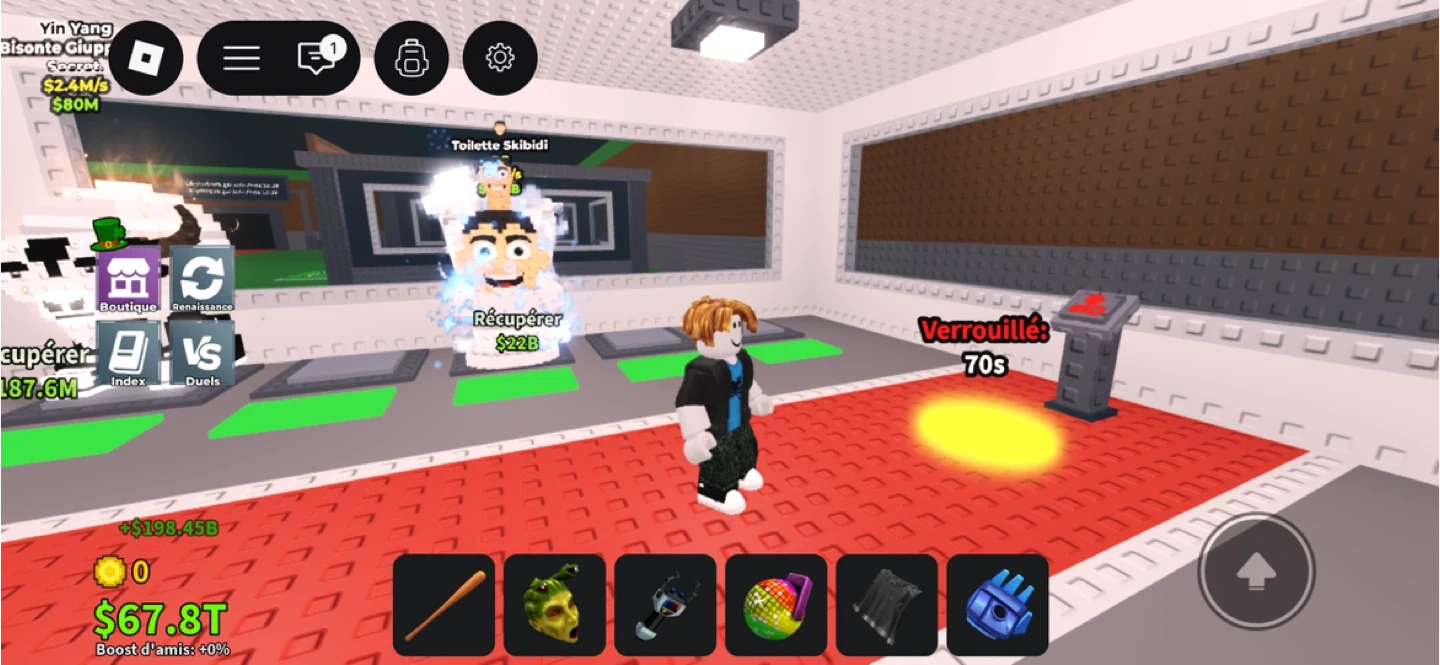 Objet virtuel de jeu Roblox. Permet de récupérer 3.1 milliards la seconde . Une niveau de OG(plus rare niveau).Avec le skibidi trait.ONLY CASH!