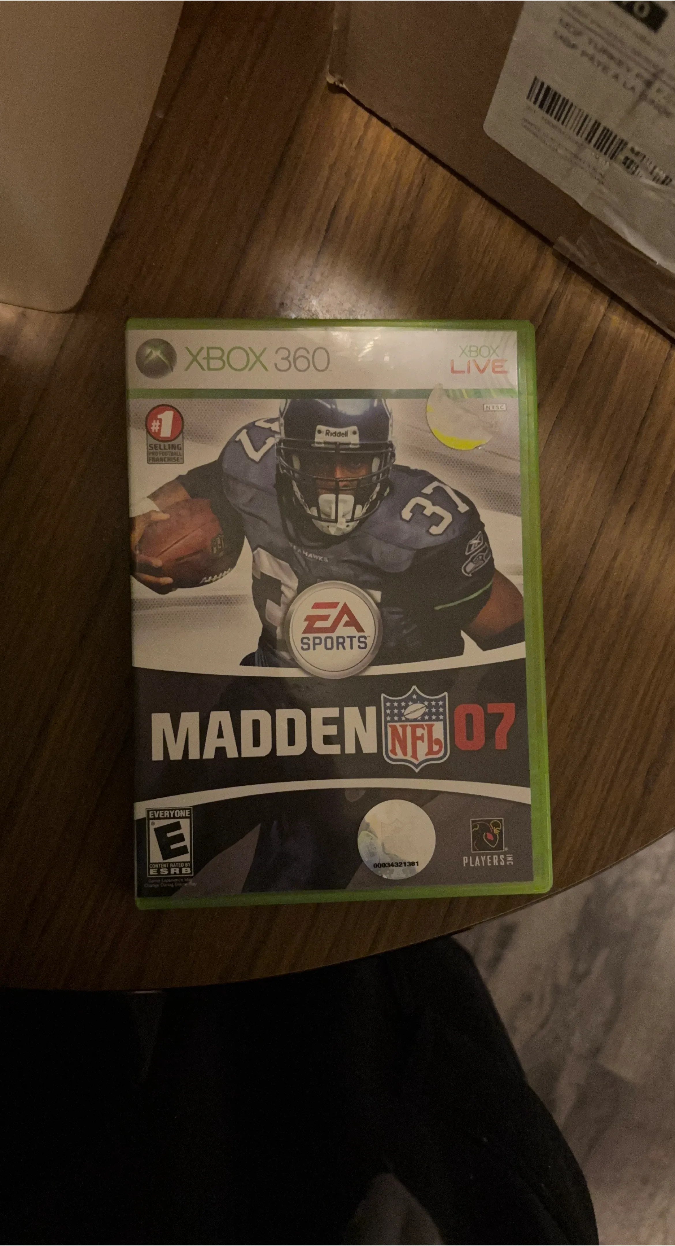 It's the Madden NFL 07 video game for Xbox 360. It's rated E for Everyone by the ESRB. This game is part of the best-selling pro football franchise.
