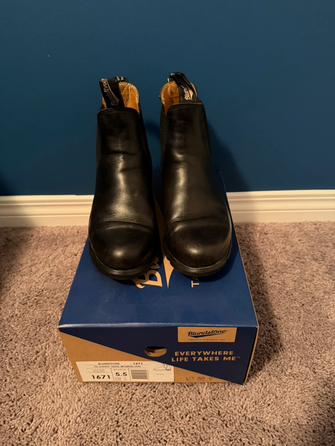 Selling a pair of Blundstone 1671 women's heel boots. These are in great condition and come with the original box. The boots are black and feature a brand new insole.