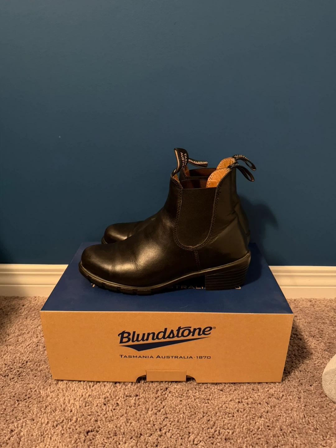 Selling a pair of Blundstone 1671 women's heel boots. These are in great condition and come with the original box. The boots are black and feature a brand new insole.