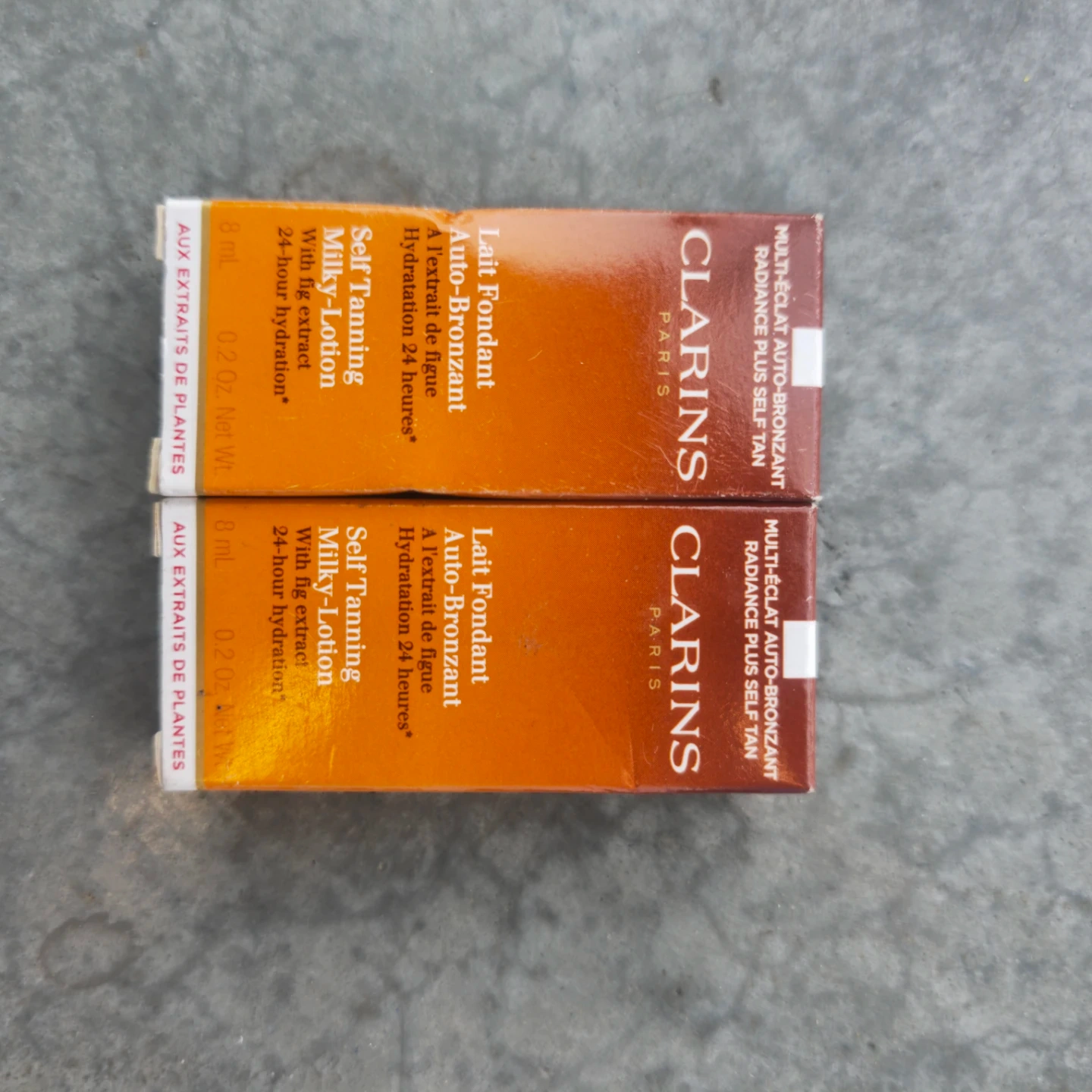 This Clarins Radiance Plus Self Tan features a milky-lotion formula. It contains fig extract for 24-hour hydration. Each bottle is 8 ml (0.2 Oz Net Wt). Retails for $42 asking $10 each