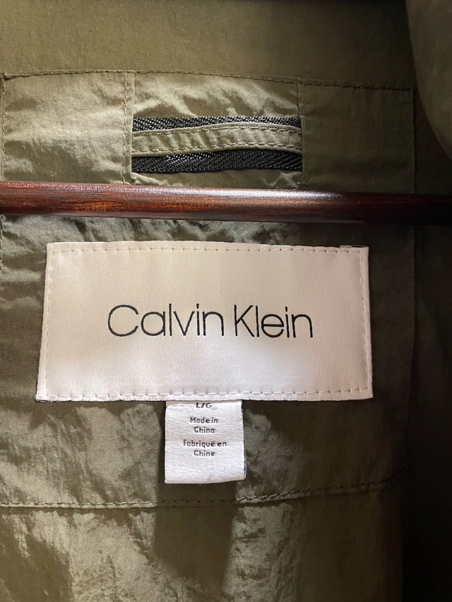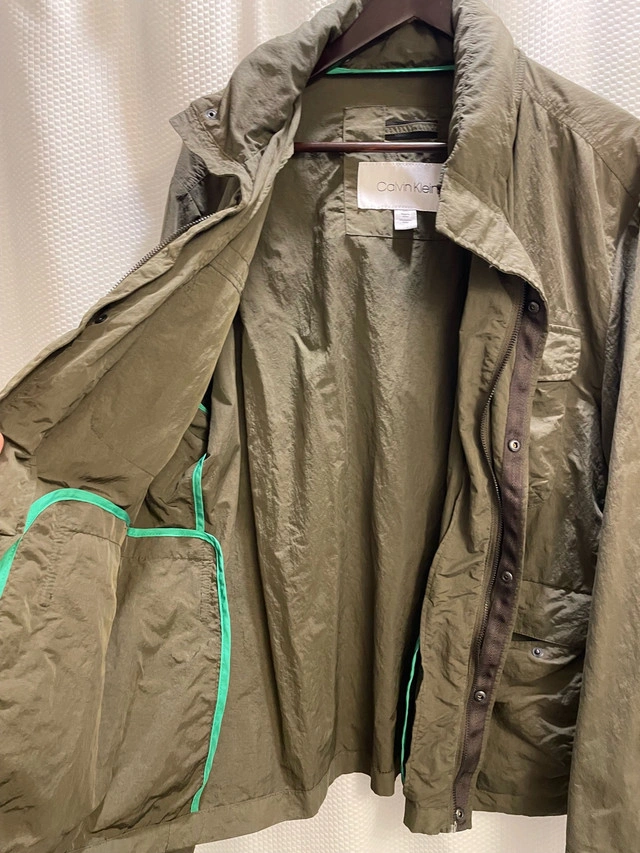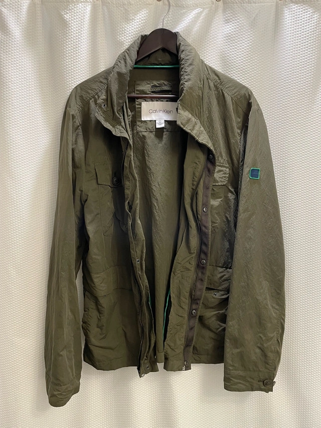 Elevate your wardrobe with this stylish Calvin Klein jacket, perfect for transitioning between seasons. This lightweight jacket features a sleek design with multiple pockets and a modern fit, making it both practical and fashionable. There are no visible signs of wear. The jacket is a size large. I am pricing it at $75. Worn 3 times.