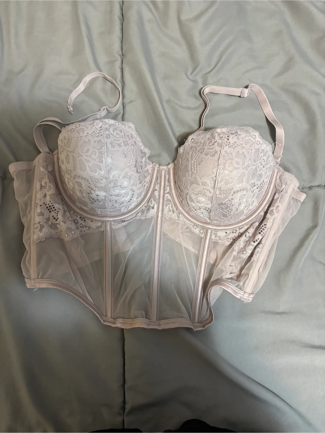 Selling a La Senza bustier in size medium. It's a beautiful piece with lace detailing and a comfortable fit. Perfect for adding a touch of elegance to your wardrobe! Never been worn before, only washed once.