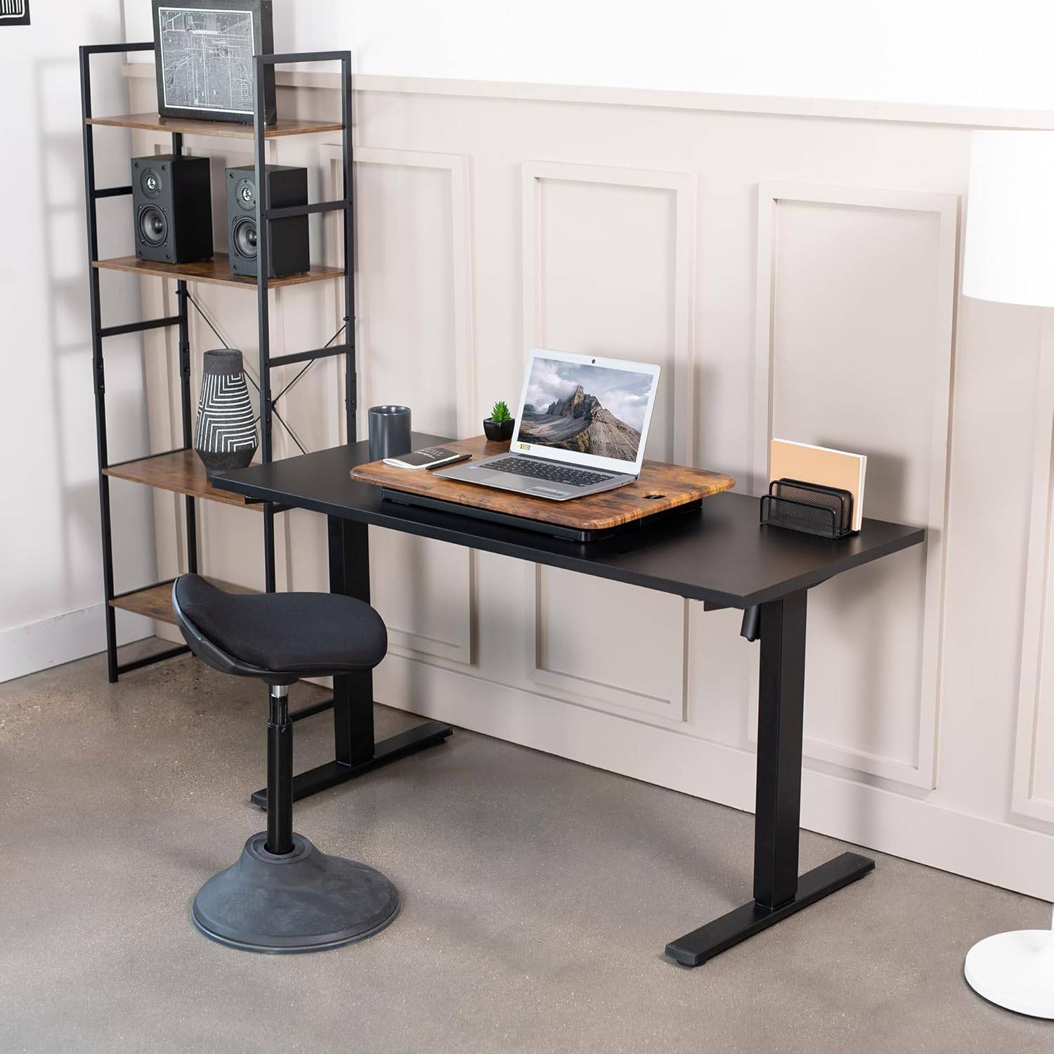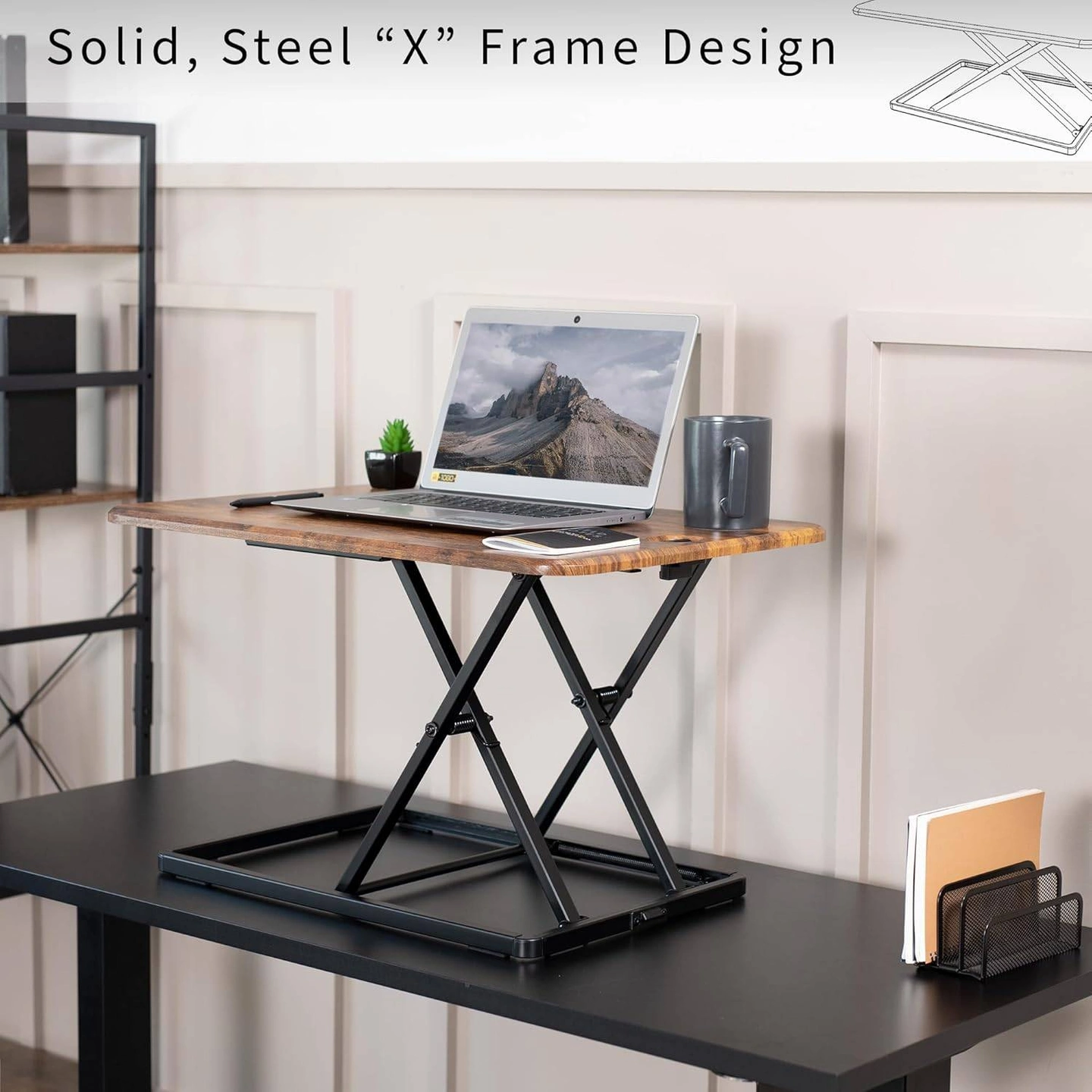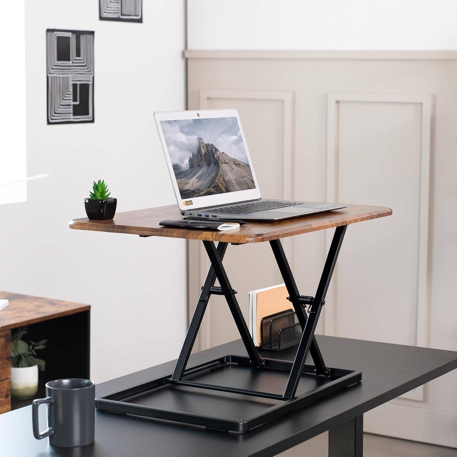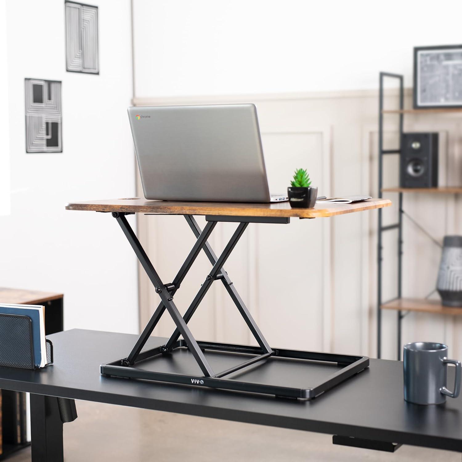 Compact Sit Stand Desktop Converter for Monitor or Laptop, Rustic Vintage Brown, DESK-V001JN