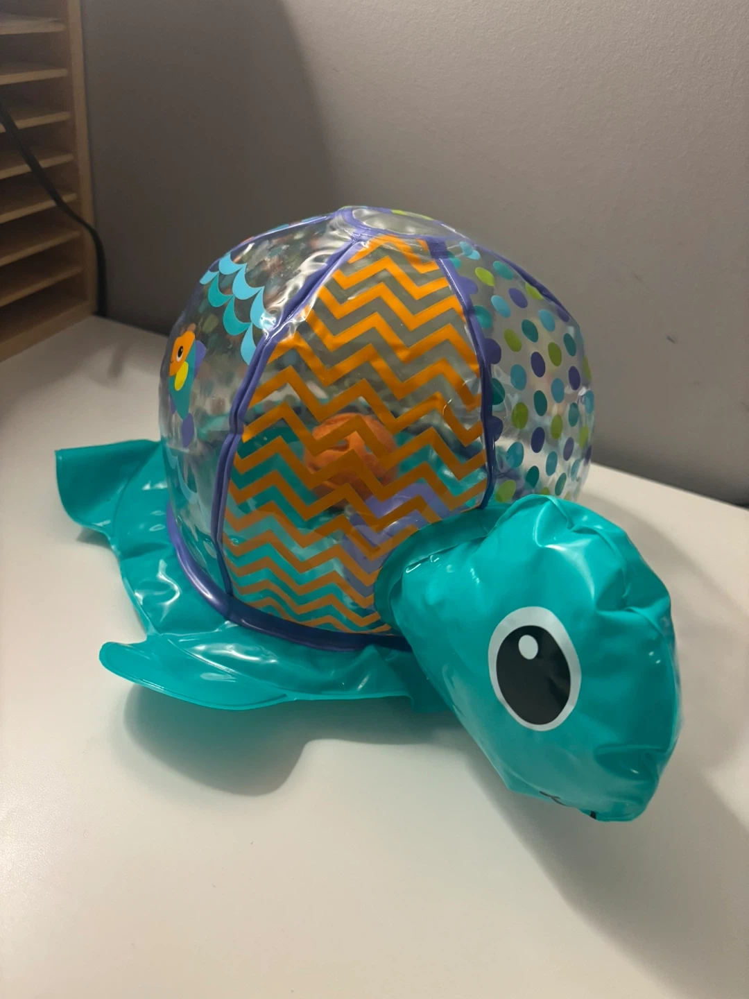 This inflatable turtle is meant to be a bath toy, but we never used it in the bath nor did my son okay with this all that much. It’s just been sitting in my closet and we no longer need this