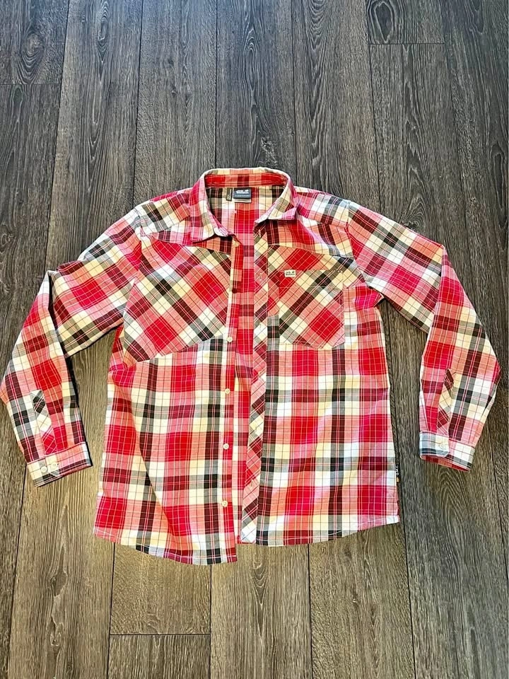 Jack Wolfskin Plaid Flannel Shirt - New Men's XL Red Slim Fit