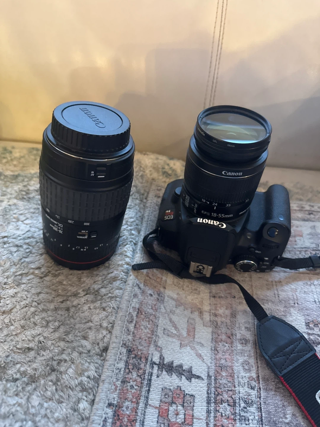 This Canon EOS Rebel T4i DSLR camera comes with an 18-55mm lens, perfect for everyday photography. It's a great entry-level DSLR for anyone looking to capture memories. Also includes 70-300mm. A camera bag is also included! Barely used.