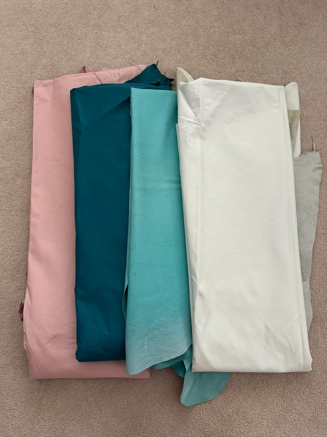 Four panels of coloured leather
