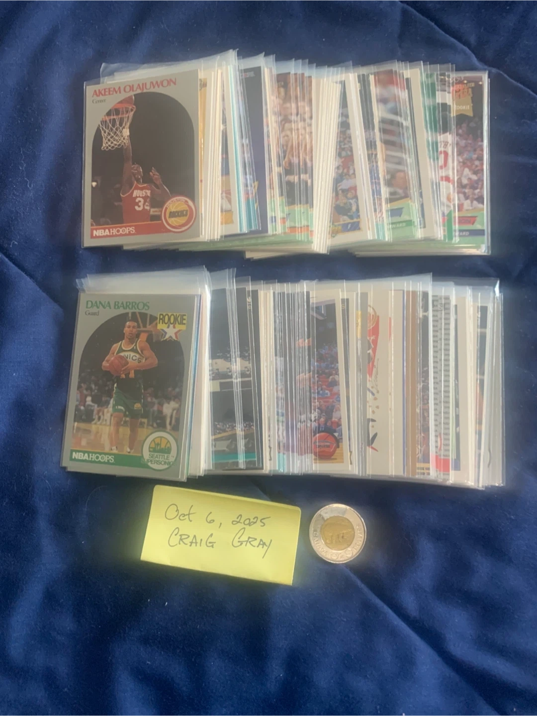 Assorted NBA cards, most from early 90’s. Various makes of cards. No high value cards. 234 cards in total. Rookie cards and star players See list for what’s there. Would like to sell as a lot $60, shipping available within Canada at buyers expense , ( once Canada Post goes back ). Can be picked up in Bolton