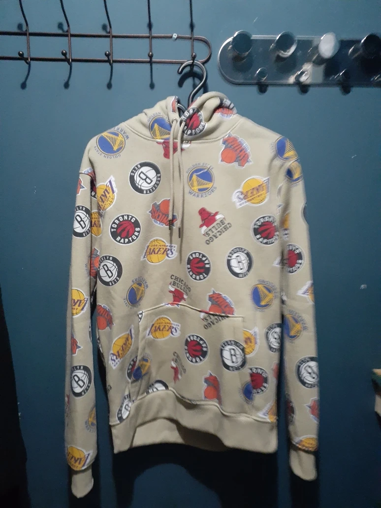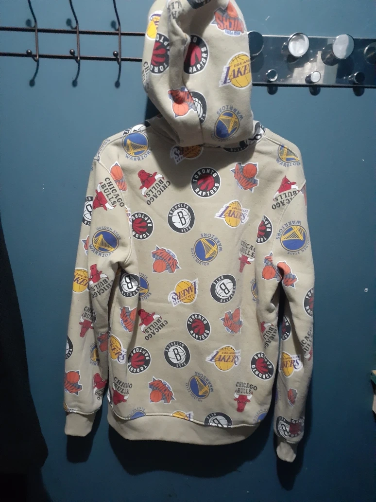 15Here's a fun hoodie covered in NBA team logos! It's in great shape and would be perfect for any basketball fan