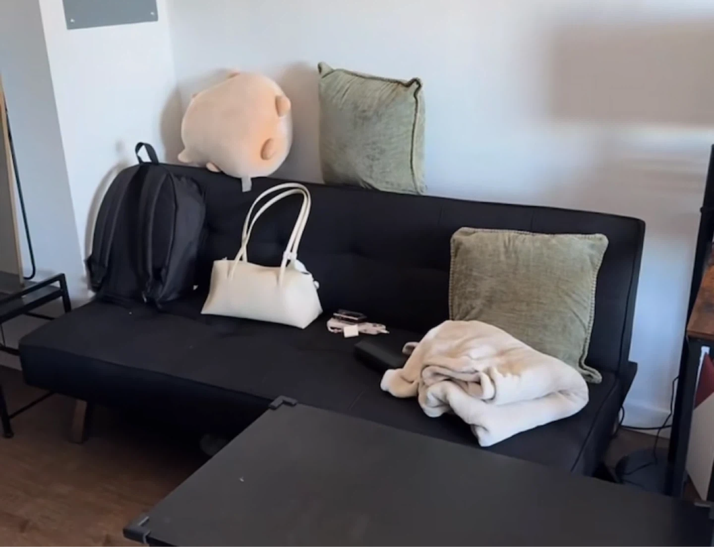 Selling a black futon sofa bed that's in good condition. Can be flattened to make a bed. Perfect for a small space or a guest room! Very clean and like new, only had for few months but selling to move to new place.