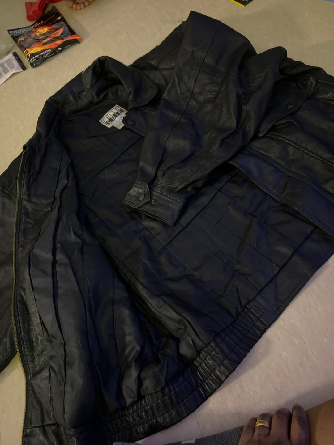 Here's a stylish black leather jacket from Leather Trend! It's in great condition and ready for a new owner. Perfect for adding a touch of cool to any outfit