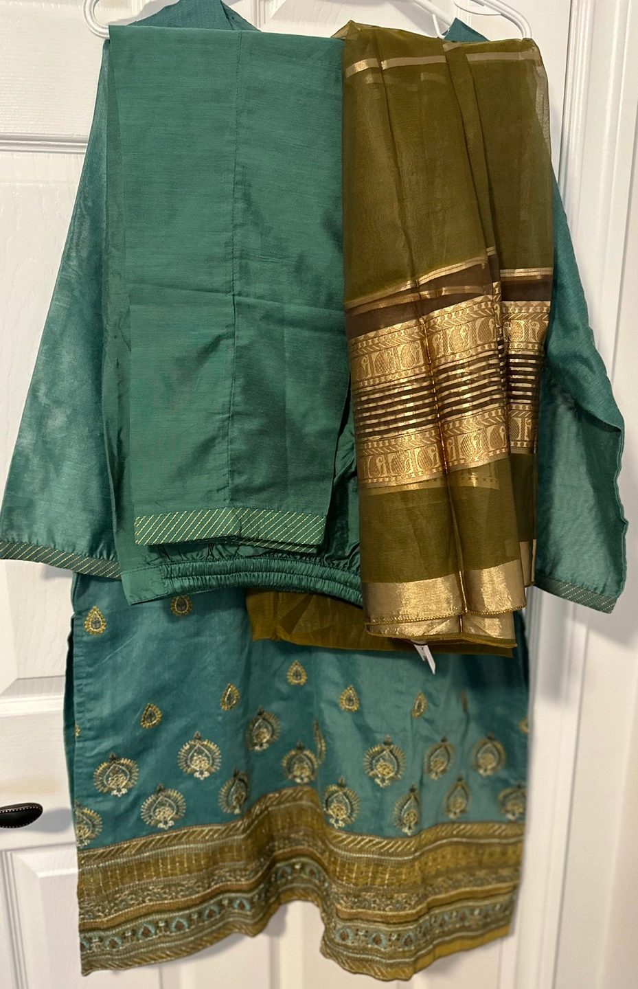 Beautiful fancy green colour 3 piece kurta trouser with organza duppata perfect for mehndi and dohlki functions