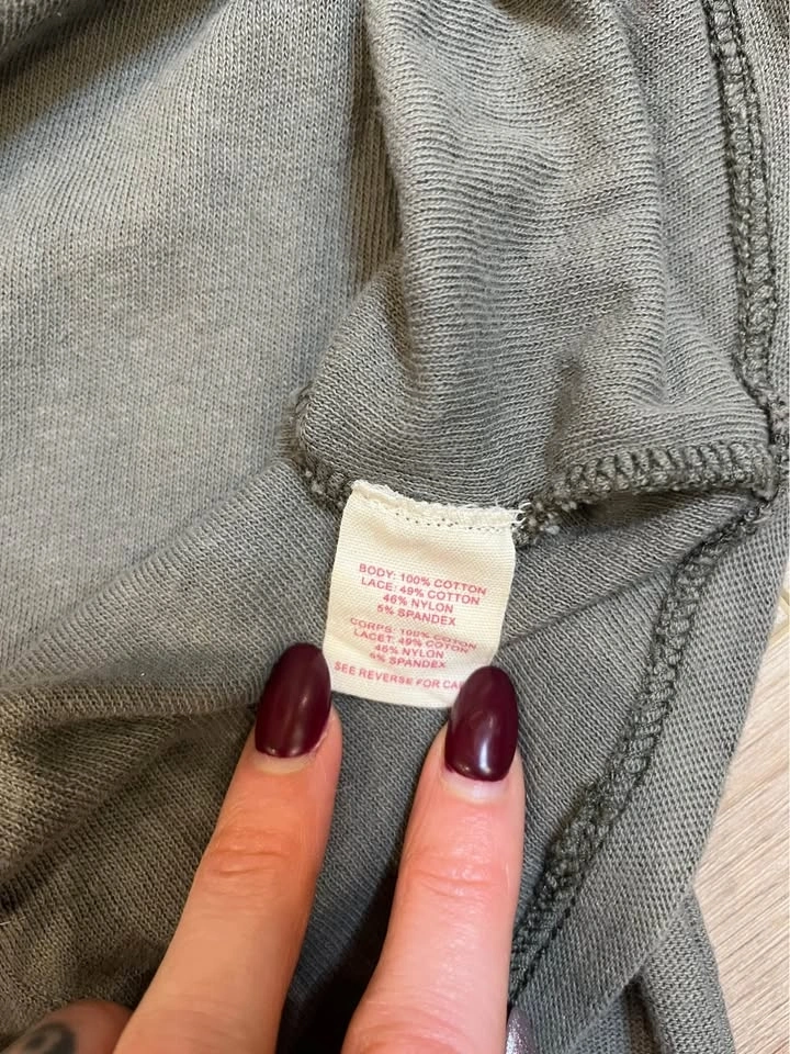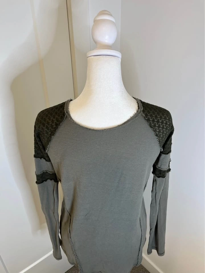 WE THE FREE Long Sleeve Olive Green Floral Detail Top