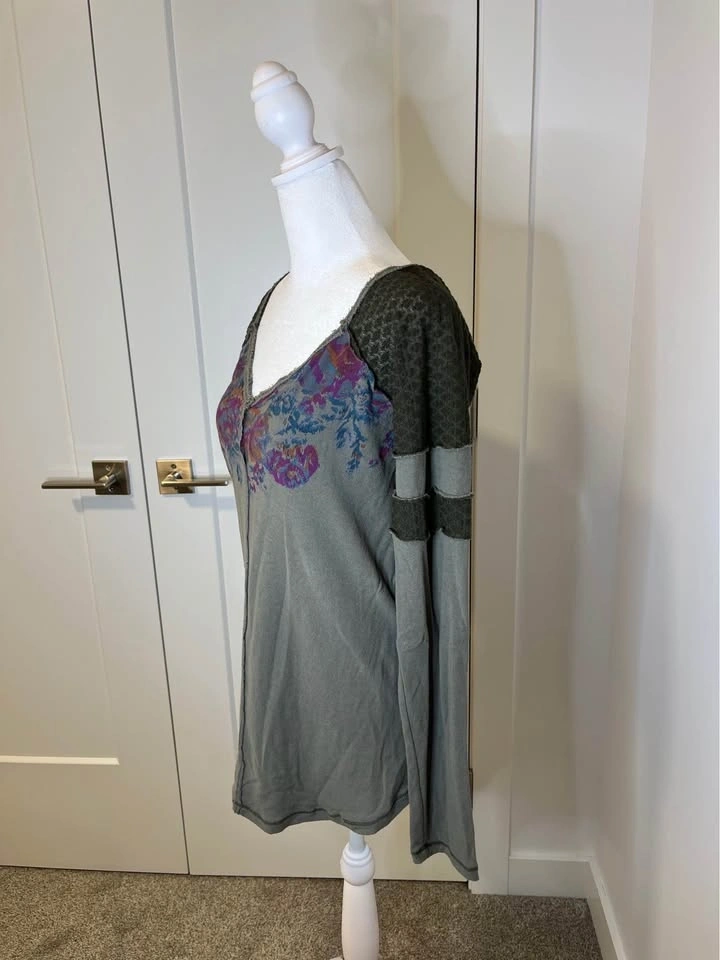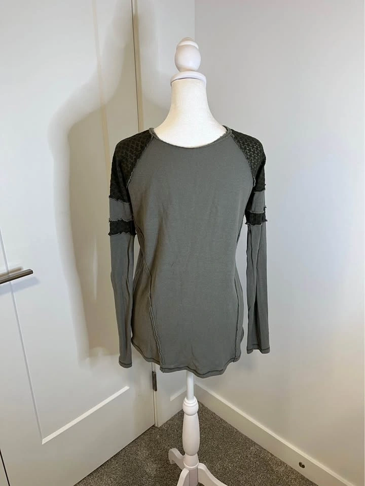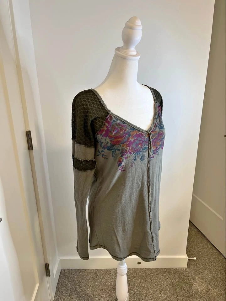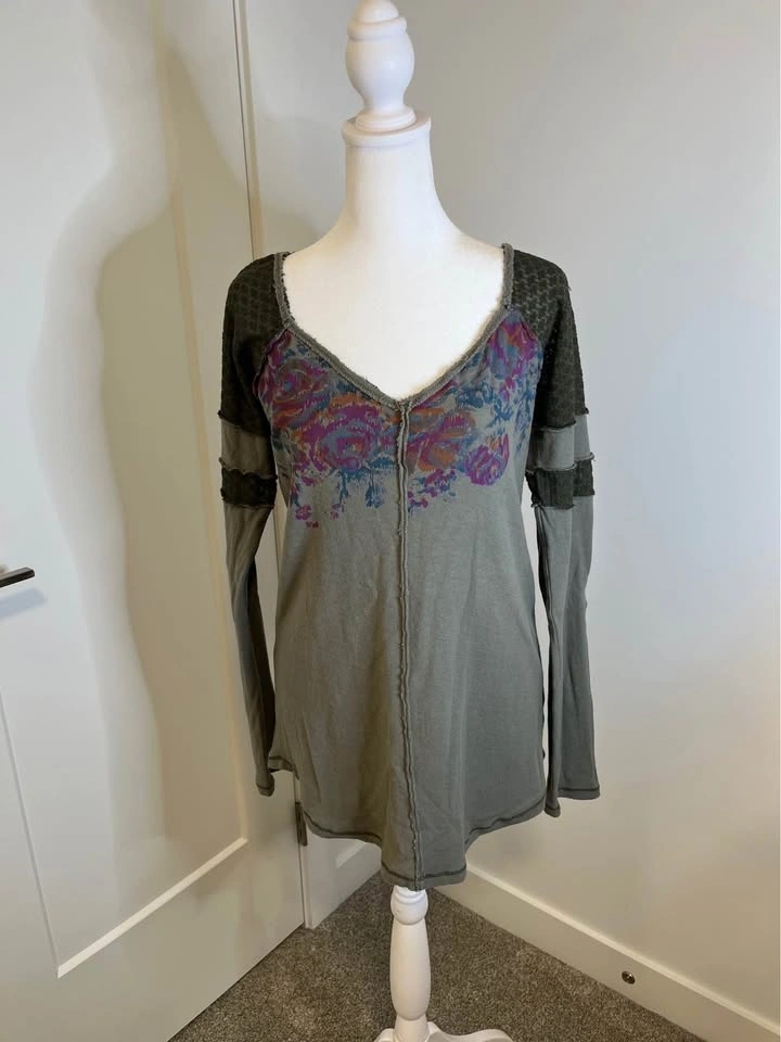 WE THE FREE Long Sleeve Olive Green Floral Detail Top