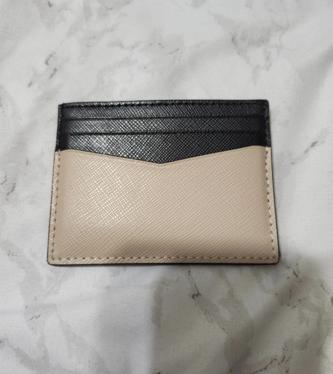 Two-toned card holder. Beige and black leather. Multiple card slots. Compact design. Perfect for everyday use. Like New. Never used but out of box.