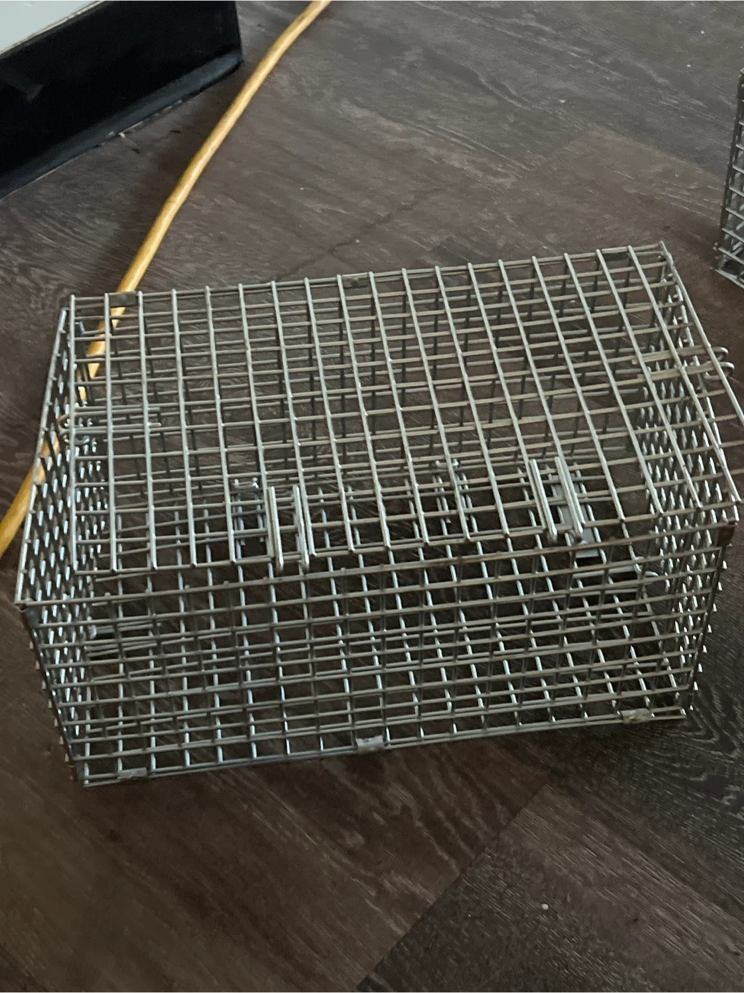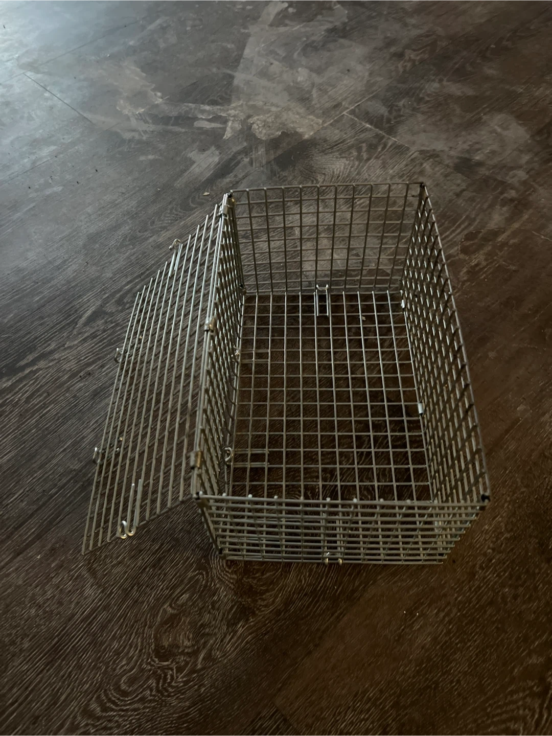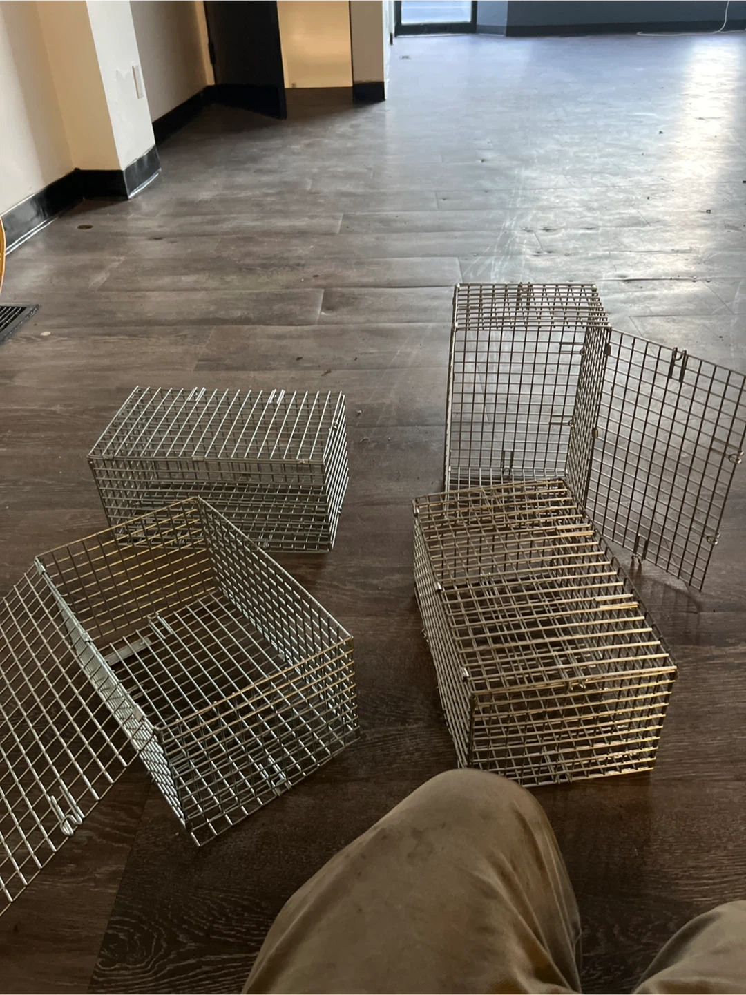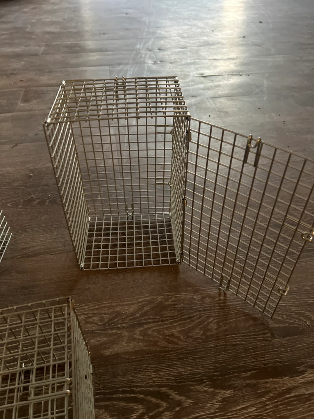 This set includes four wire mesh storage baskets. They're made of durable metal wire with hinged doors. Perfect for organizing small items or crafting projects!